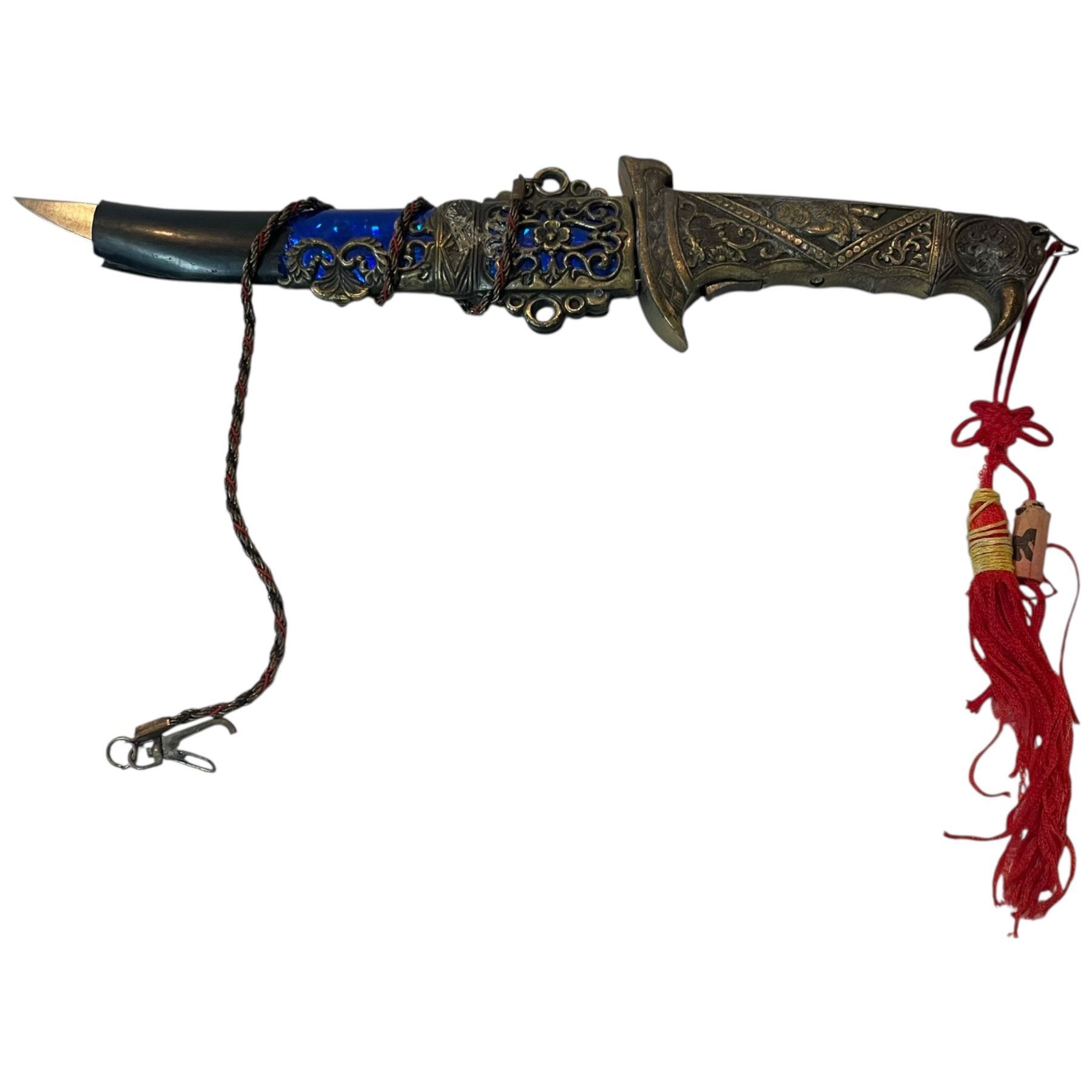 Lot 289 Brass Handled Belt Knife with 6.5" Blade (built in belt clip)