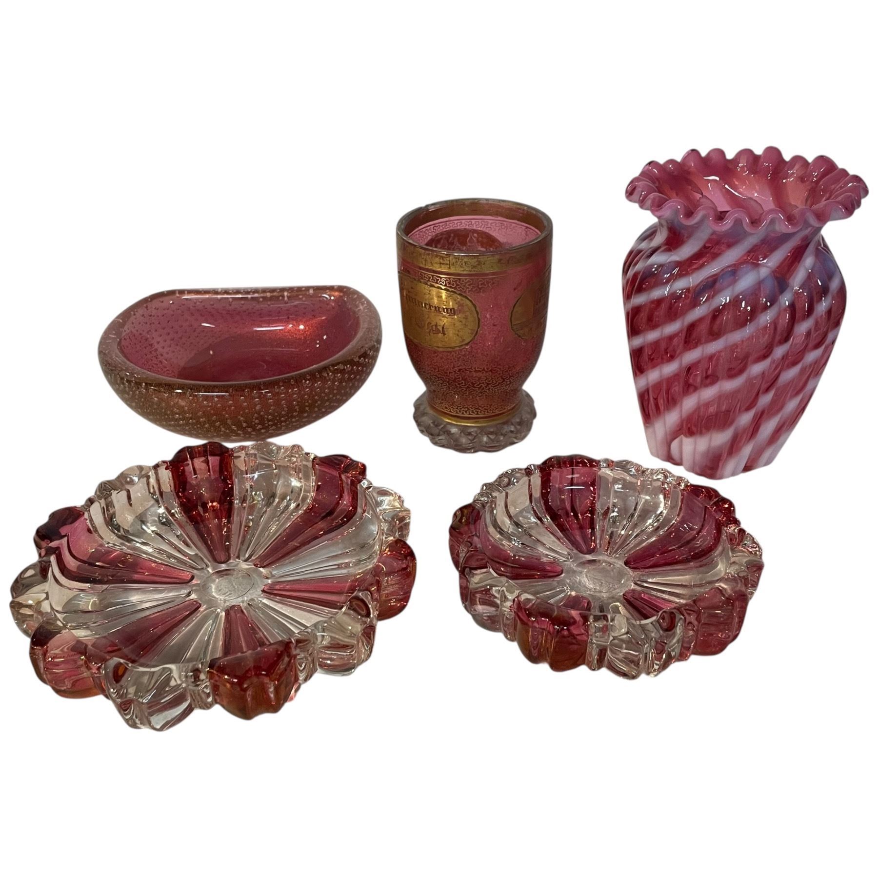 Lot 343 6 Pieces of Pink or Ruby Art Glass