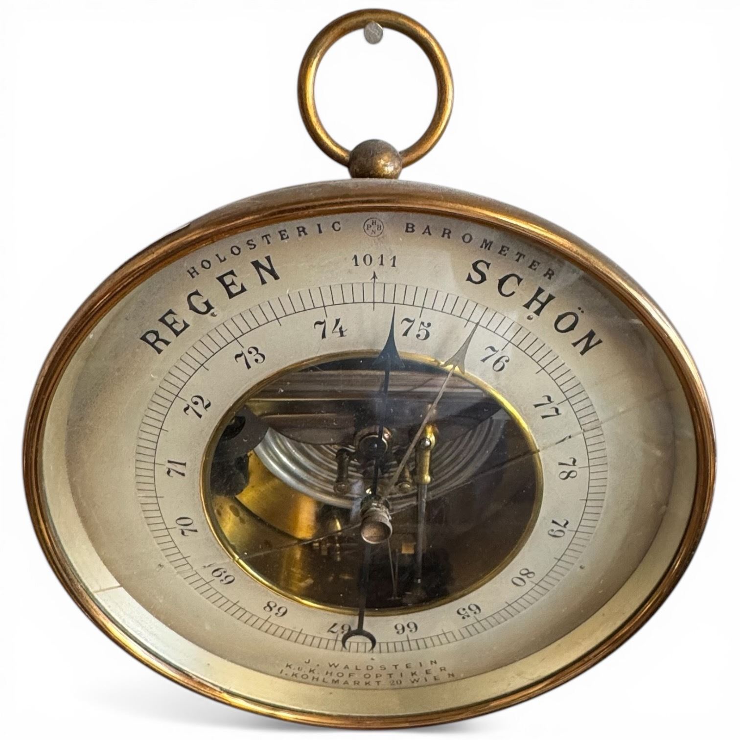 Lot 401 Antique Austrian Brass Halosteric Aneroid Barometer by J. Waldstein in Vienna (7" diameter)