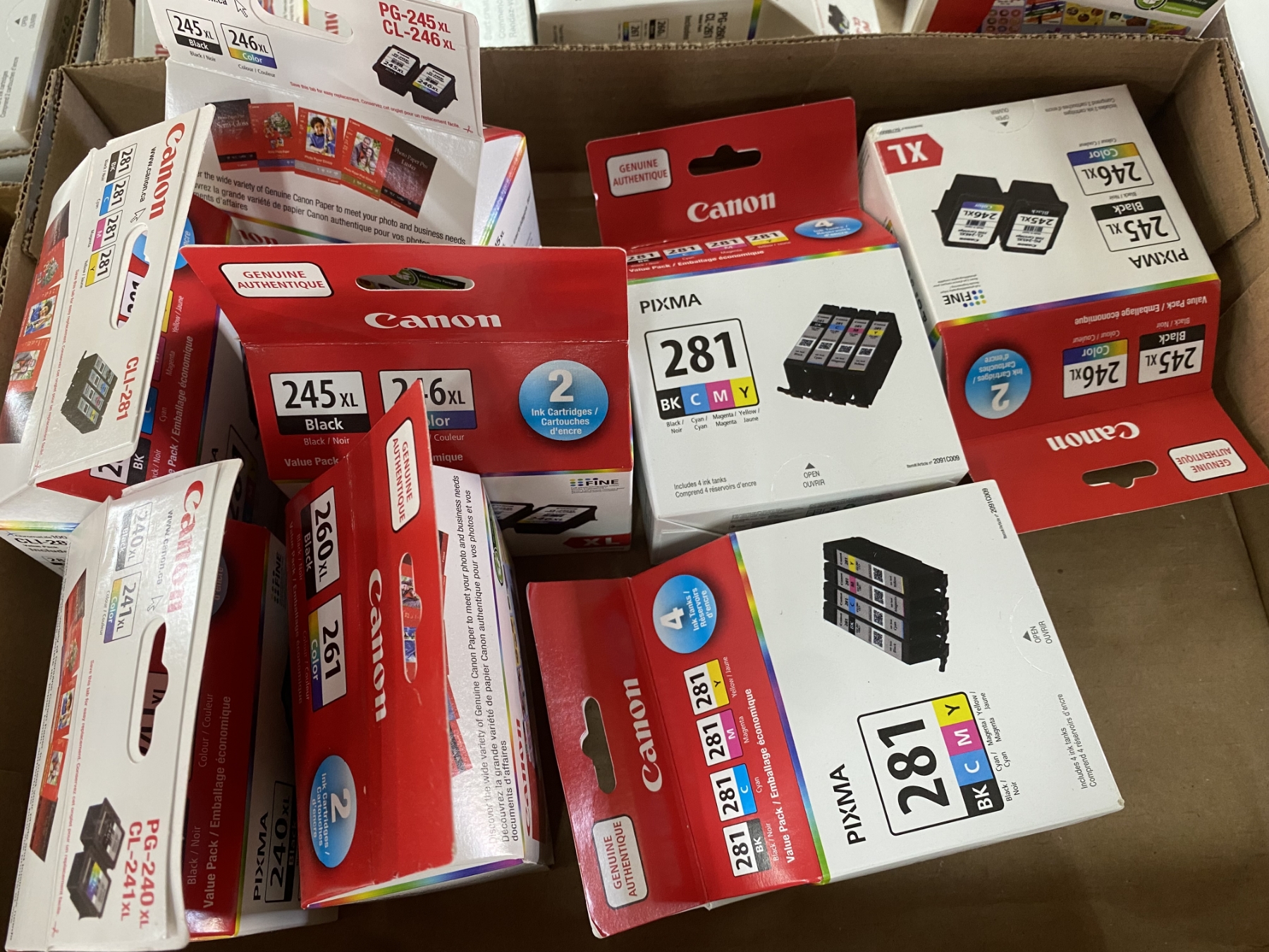 Lot 593 BOX LOT OF ASSORTED CANNON INK CARTRIDGES