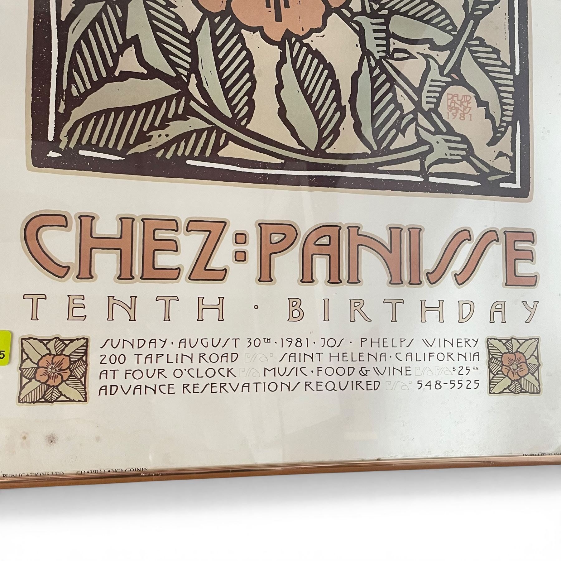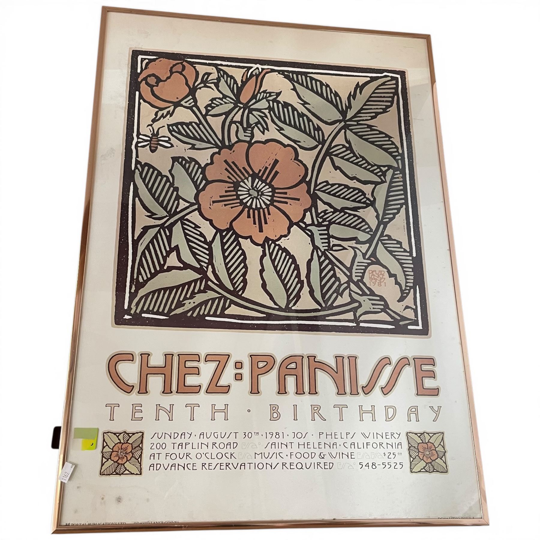 Lot 425 1981 "Chez=Panisse 10th Birthday" Framed Poster (framed dimension: 29" x 20")