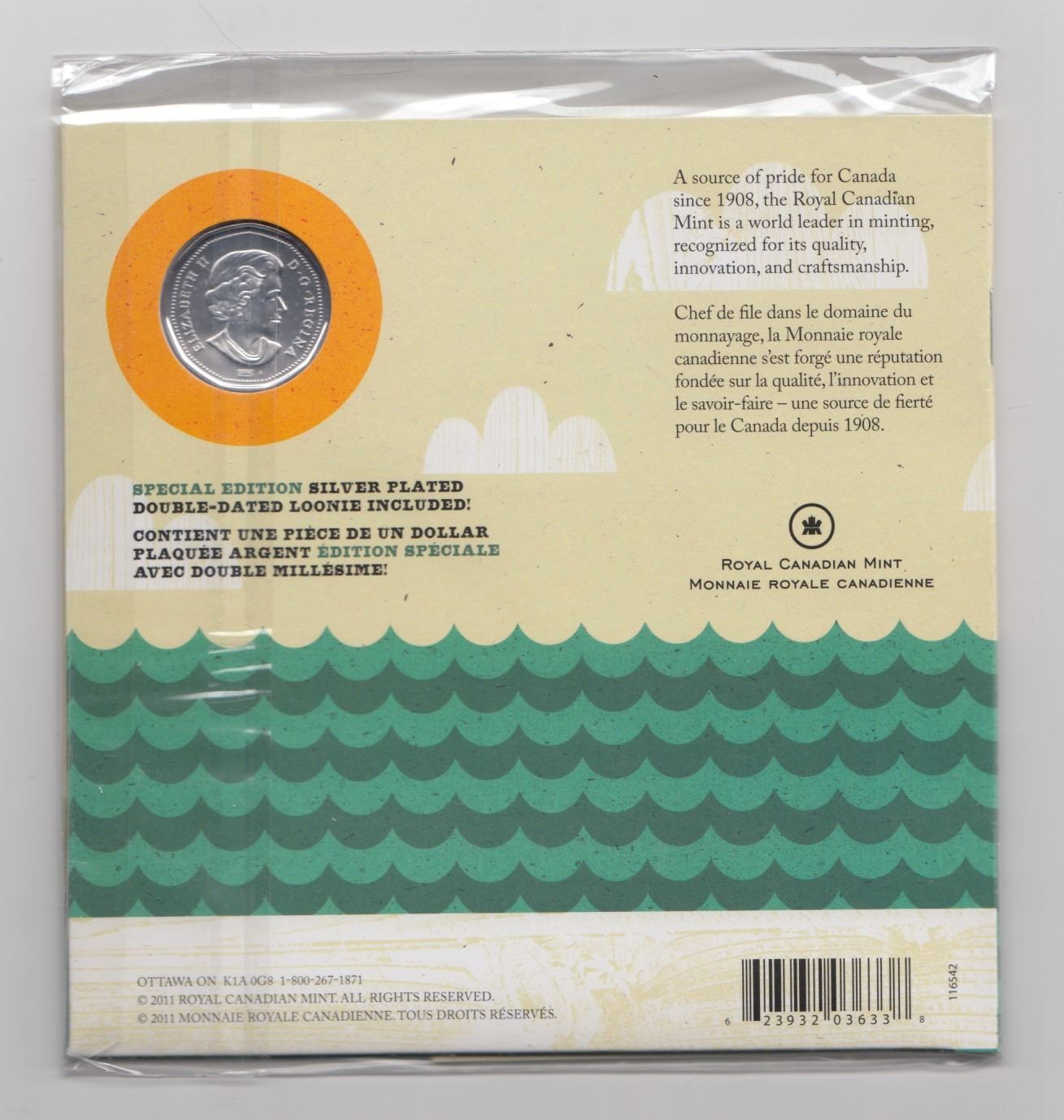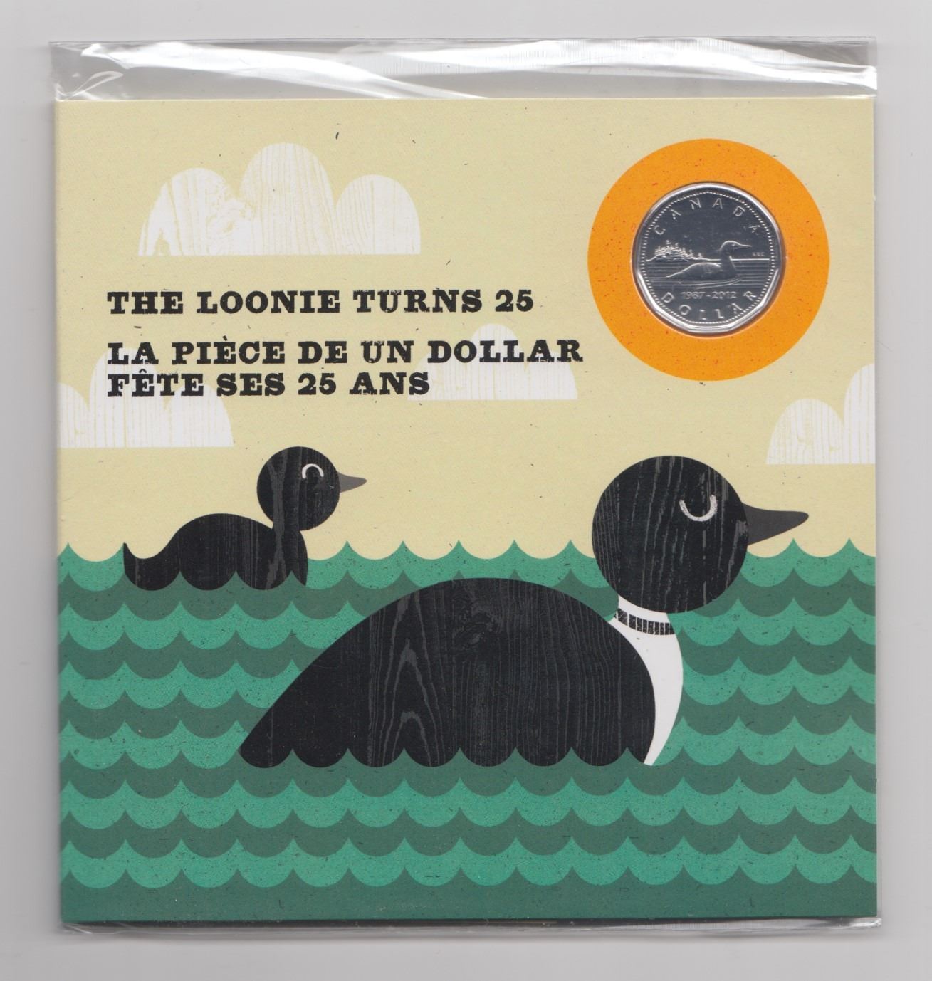 The Loonie Turns 25 special edition silver plated double dated loonie.