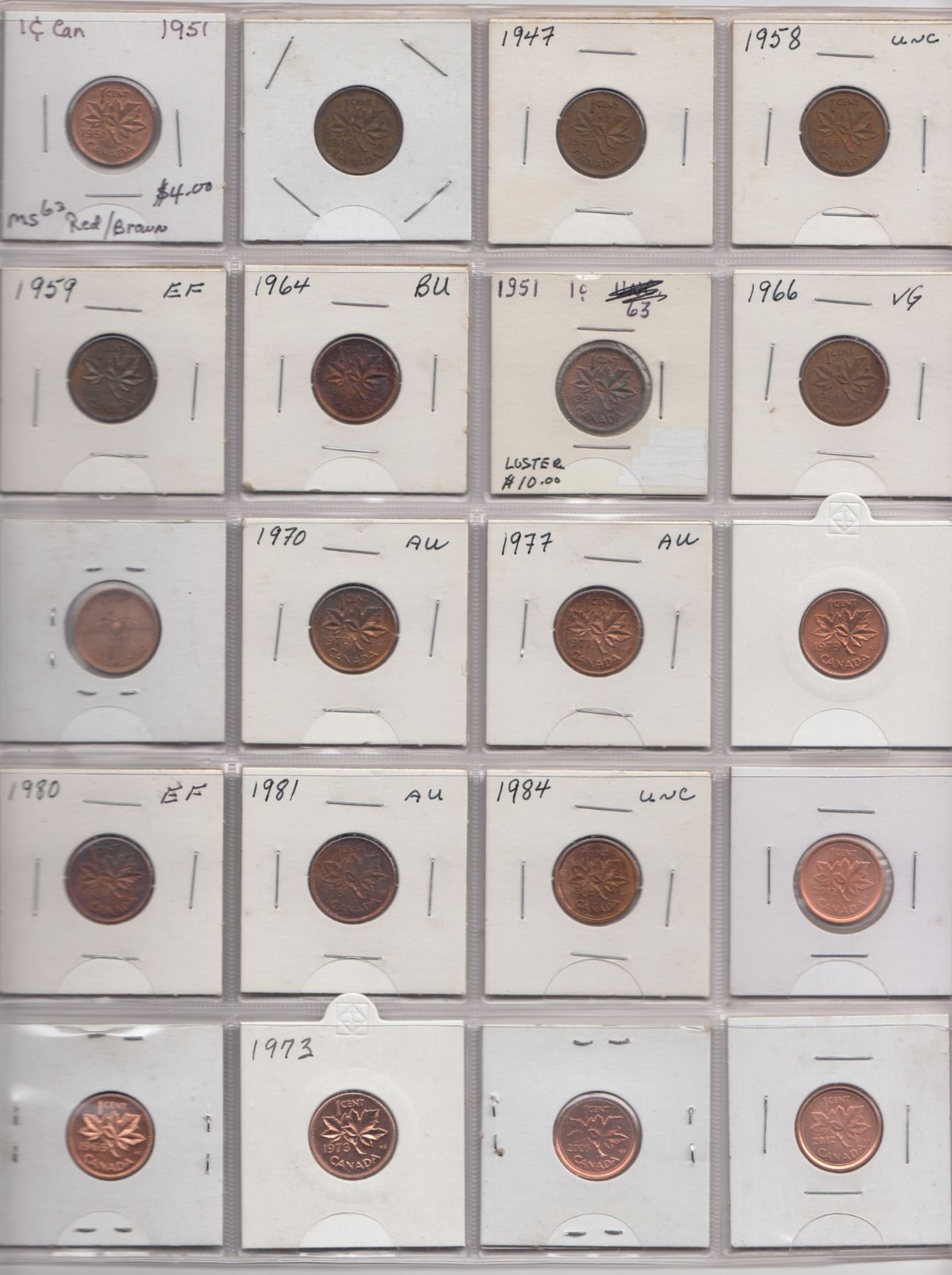 Lot 107 Lot of 20 Canada 1 Cent Coin
