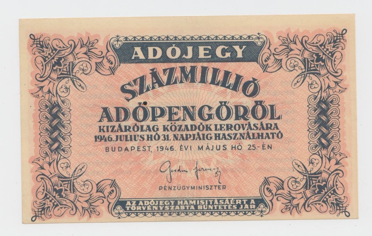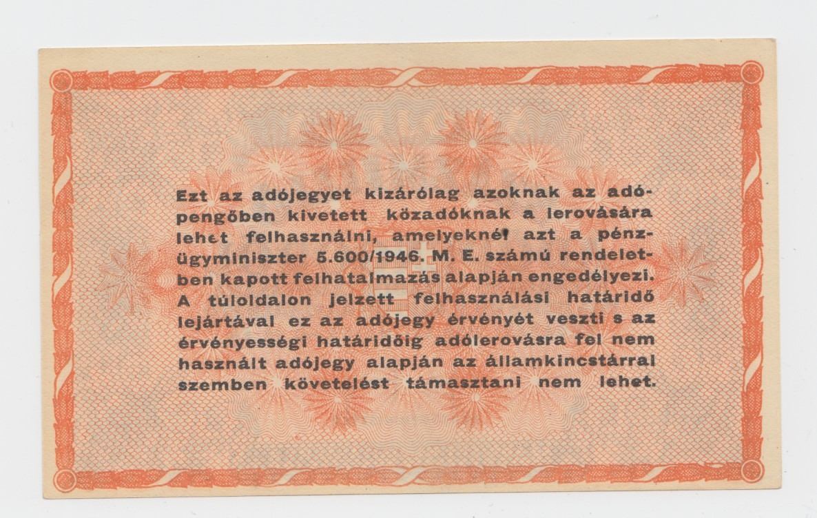 Lot 307 1946 Hungary 100 Million Adopengo Tax Note