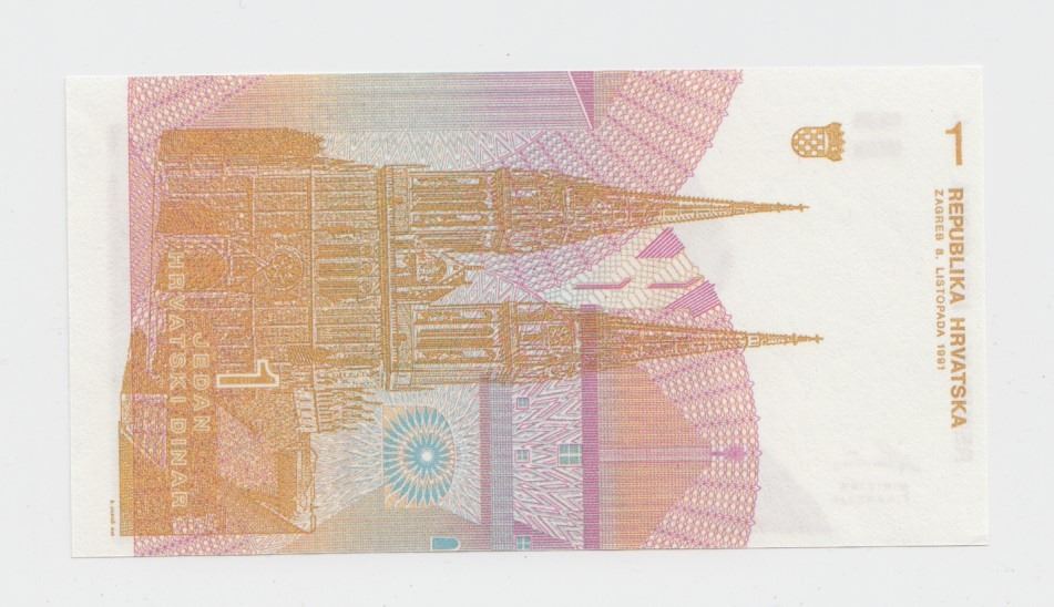 Lot 316 1991 Croatia 1 Dinar Note