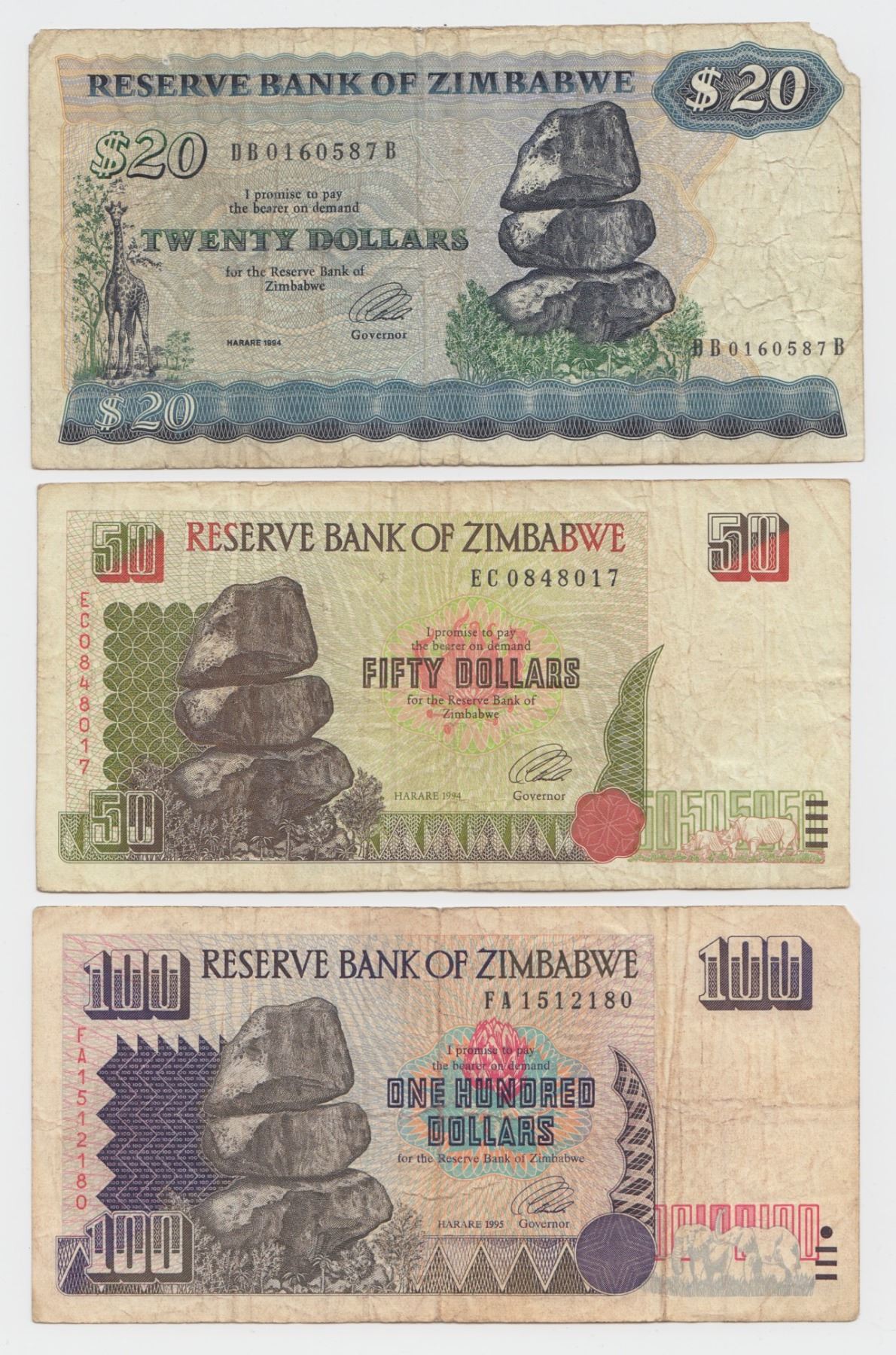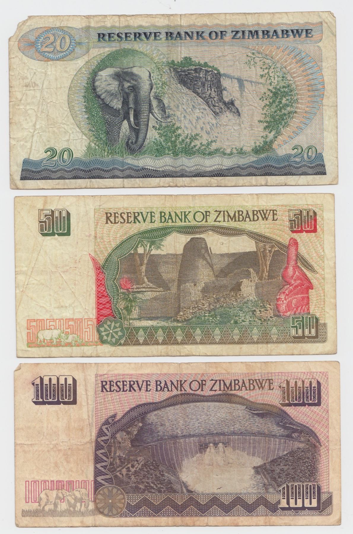 Lot 320 Zimbabwe $20, $50, $100 Notes