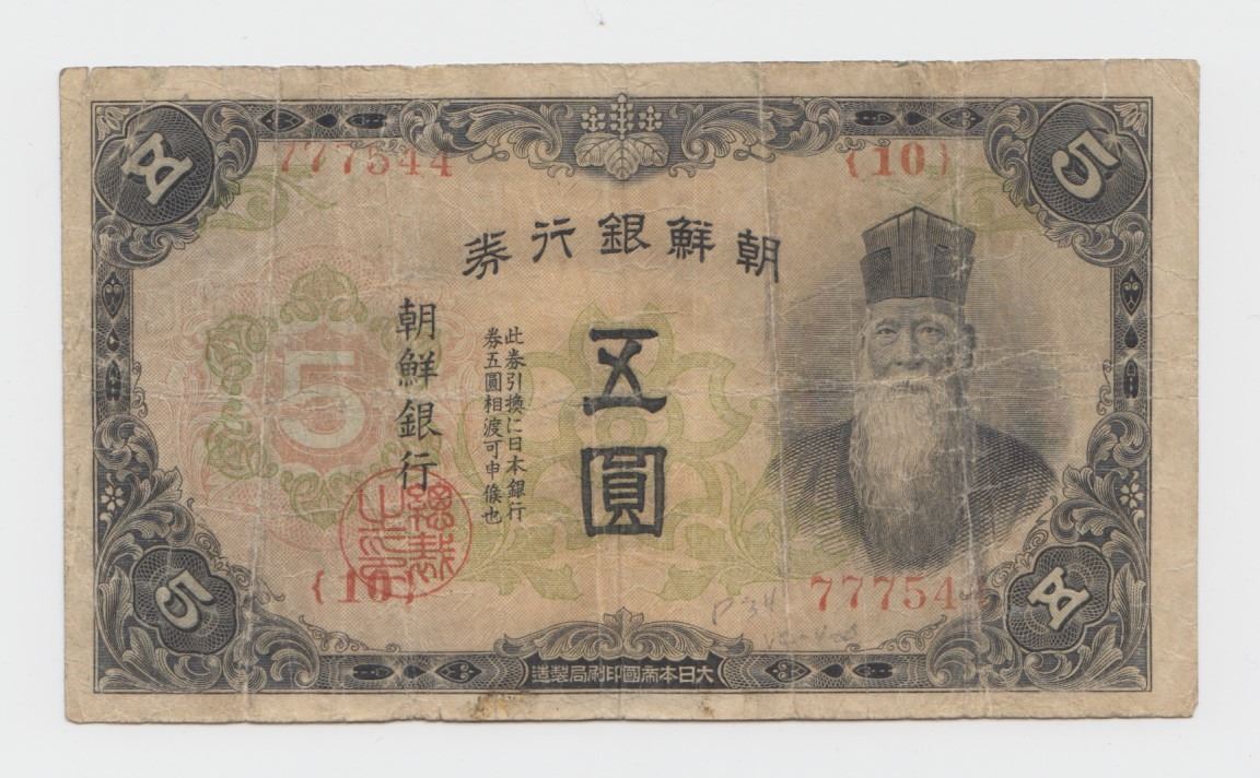 Lot 327 1944 Korea 5 Yen Note