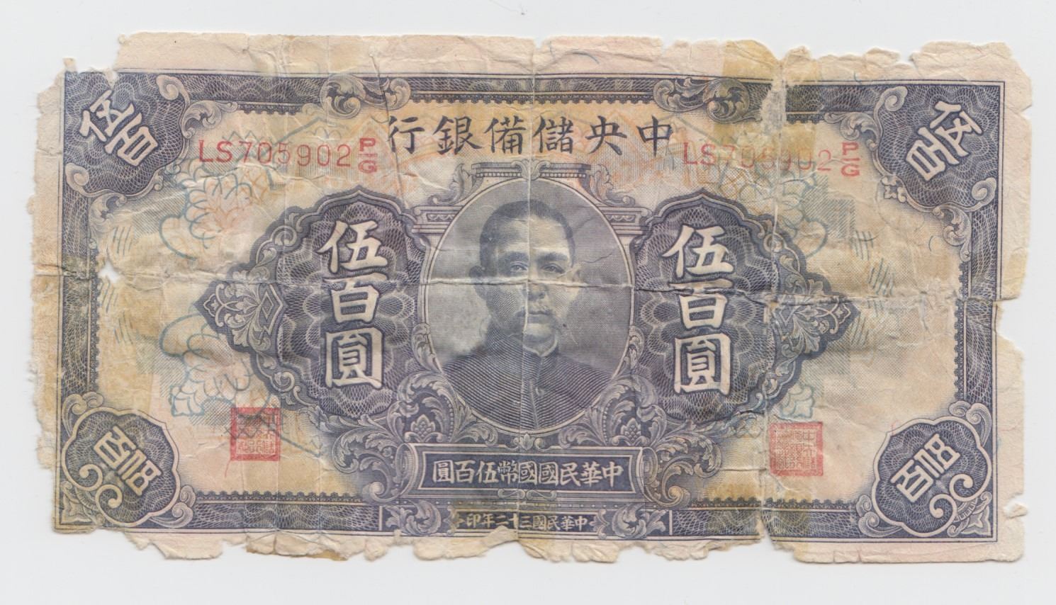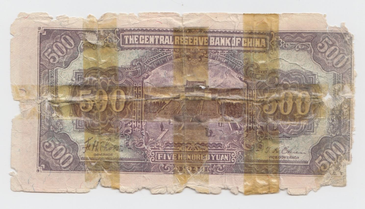 Lot 334 1943 China 500 Yuan Note