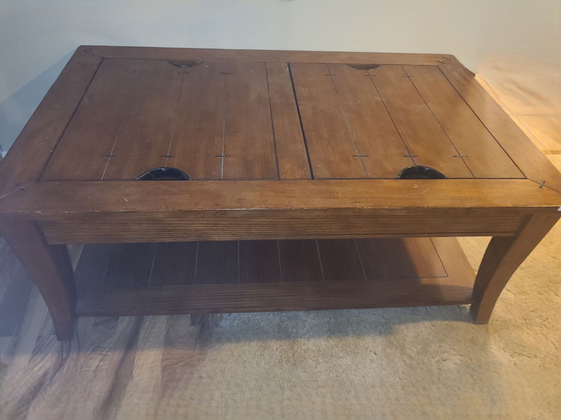 Lot 28 Wooden Coffee Table w/ Top Storage Compartments 48 W, 30 D, 19 T