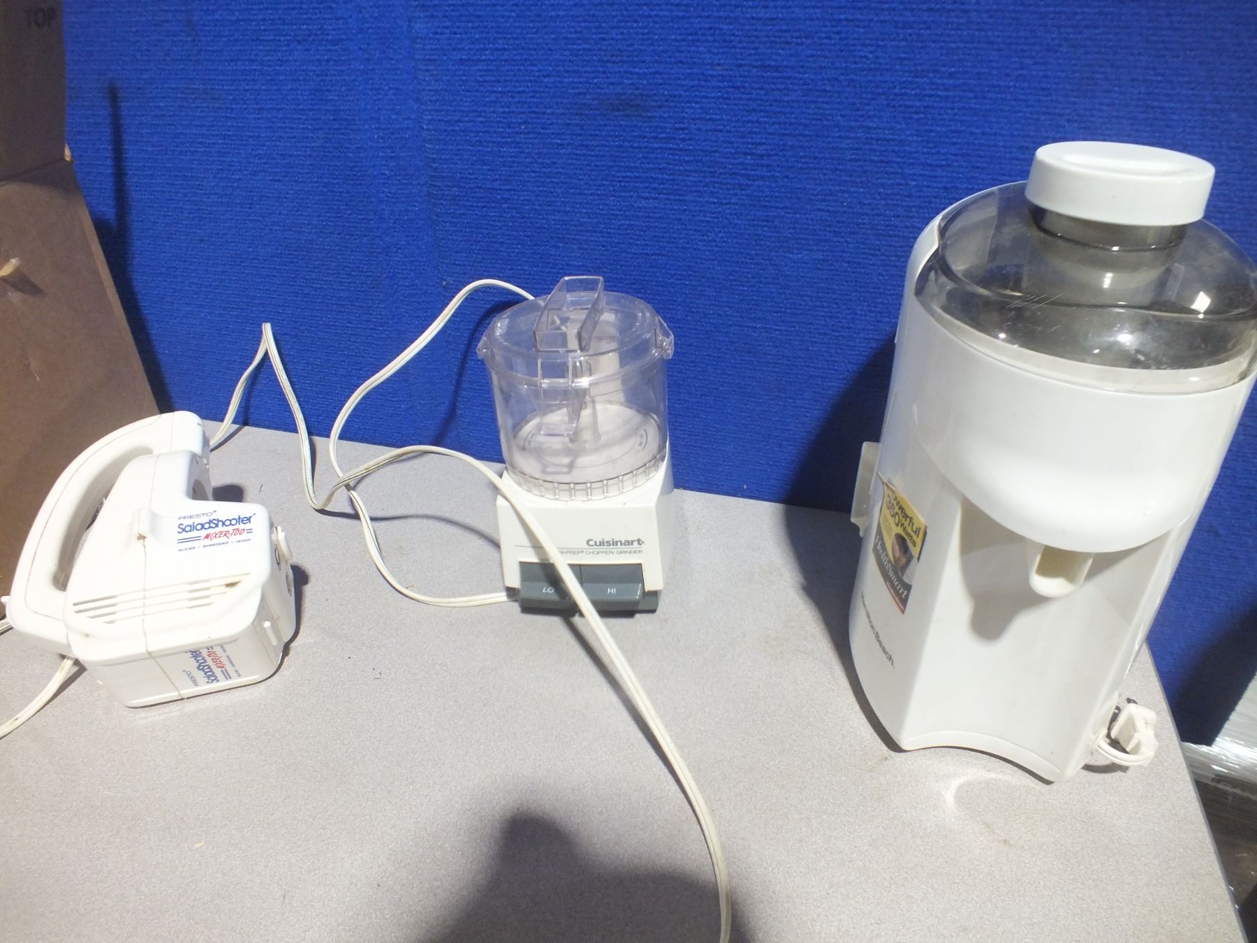 yuu get juicer, small food processor and 1 slicer...sold as is / where is...used