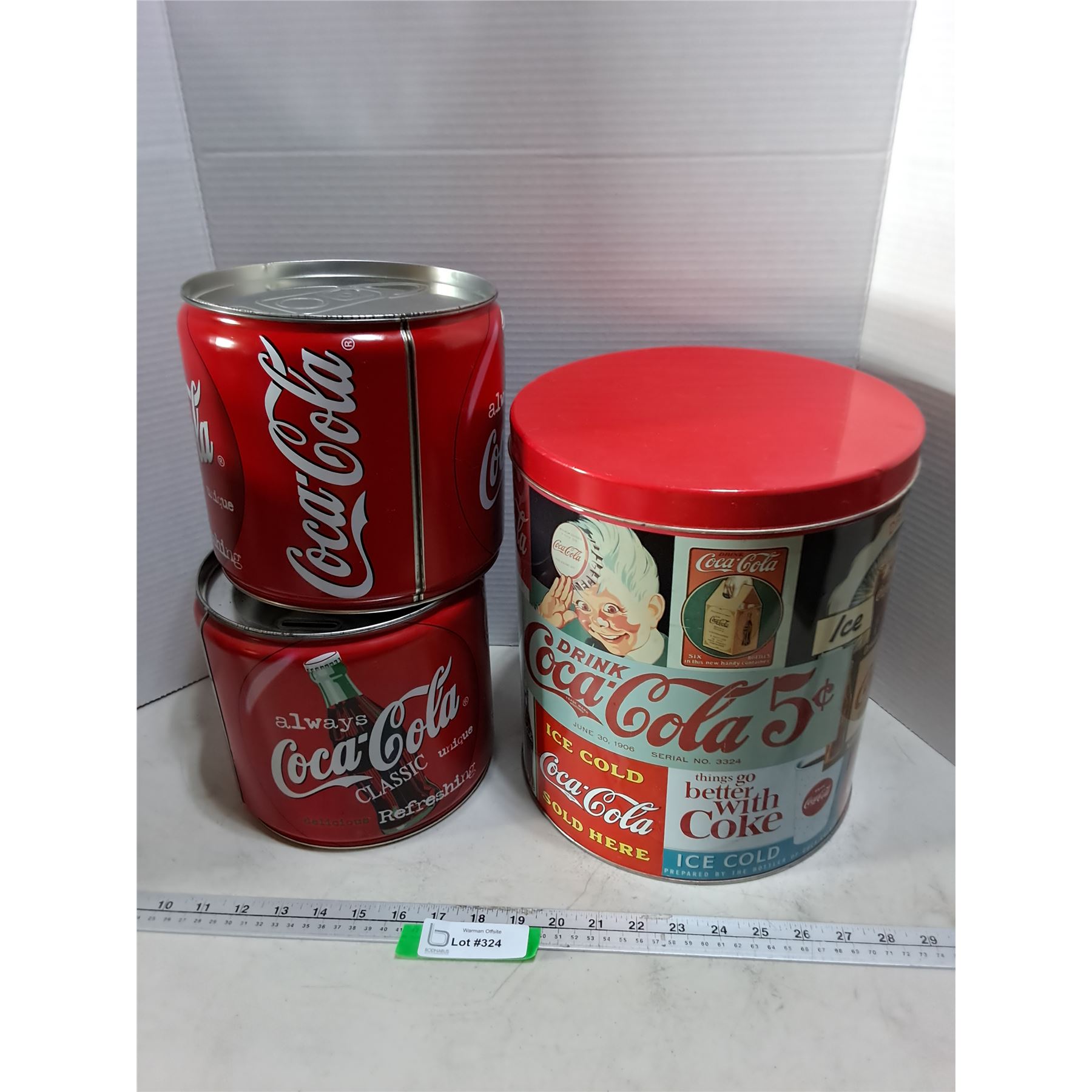 Lot 324 (3) Coca-Cola Tins (2 Are Coin Banks)