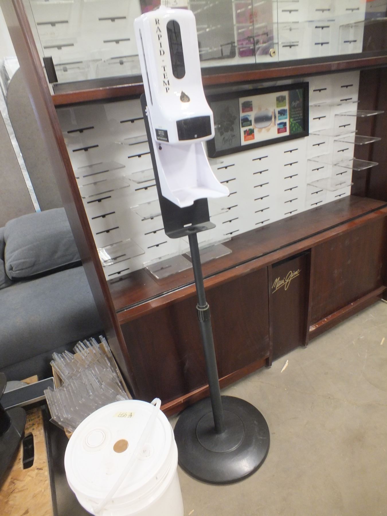 Hand Sanitizer Dispenser & 1 Pail of Hand Sanitizer...sold as is / where is...used
