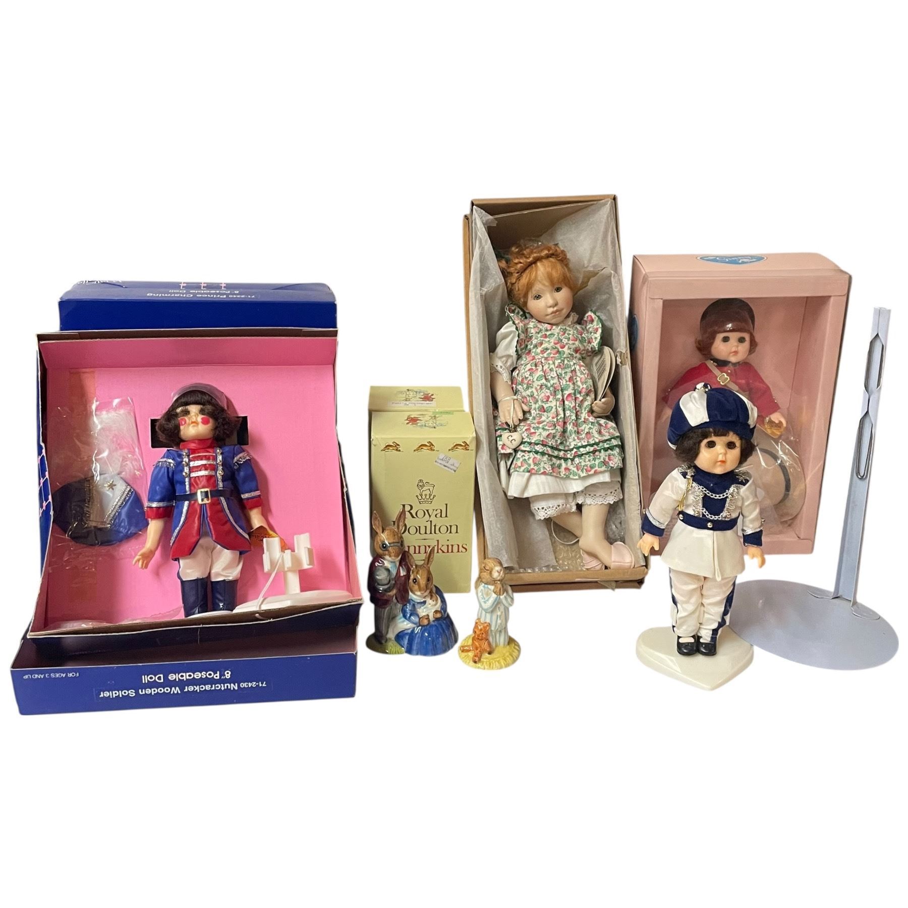 Lot 227a Group of Vintage Dolls & 2 Glazed Ceramic Bunnykins Figurines (Bunnykins Have Their Boxes)