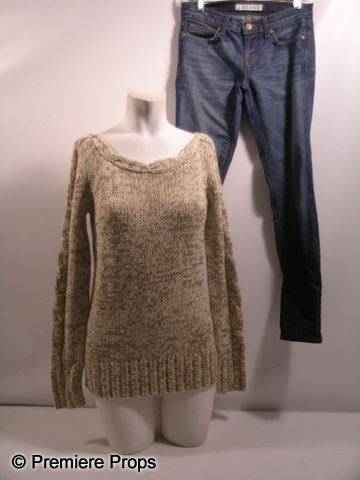 Stephanie (Kyra Sedgwick) screen worn, beige and brown woven 'Forever 21' sweater, and faded blue 'J. Brand' jeans. (size 26)