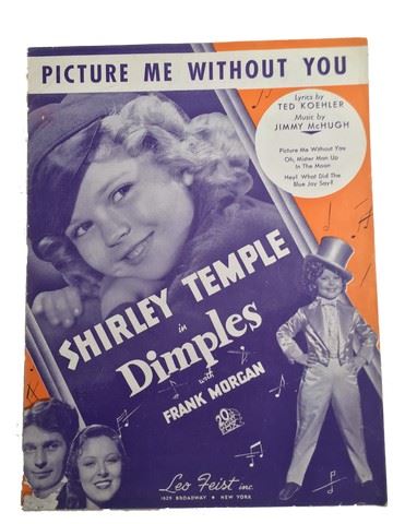 Shirley Temple Sheet Music: Dimples (1936), On The Good Ship Lollipop (1934), Picture Me Without You, set of two. (12x9)