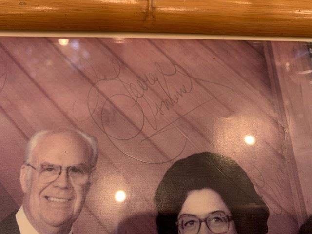 The Osmond Family portrait (from the Osmond newsletter subscription), framed and signed. This was once hung in the Debbie Reynolds Dance Studio. Signed by Marie, Donny, Jay, Jimmy, Merrill, Wayne, Alan, Virl, Tom and their parents: George and Olive. Signatures have faded over time. (23"x18")
