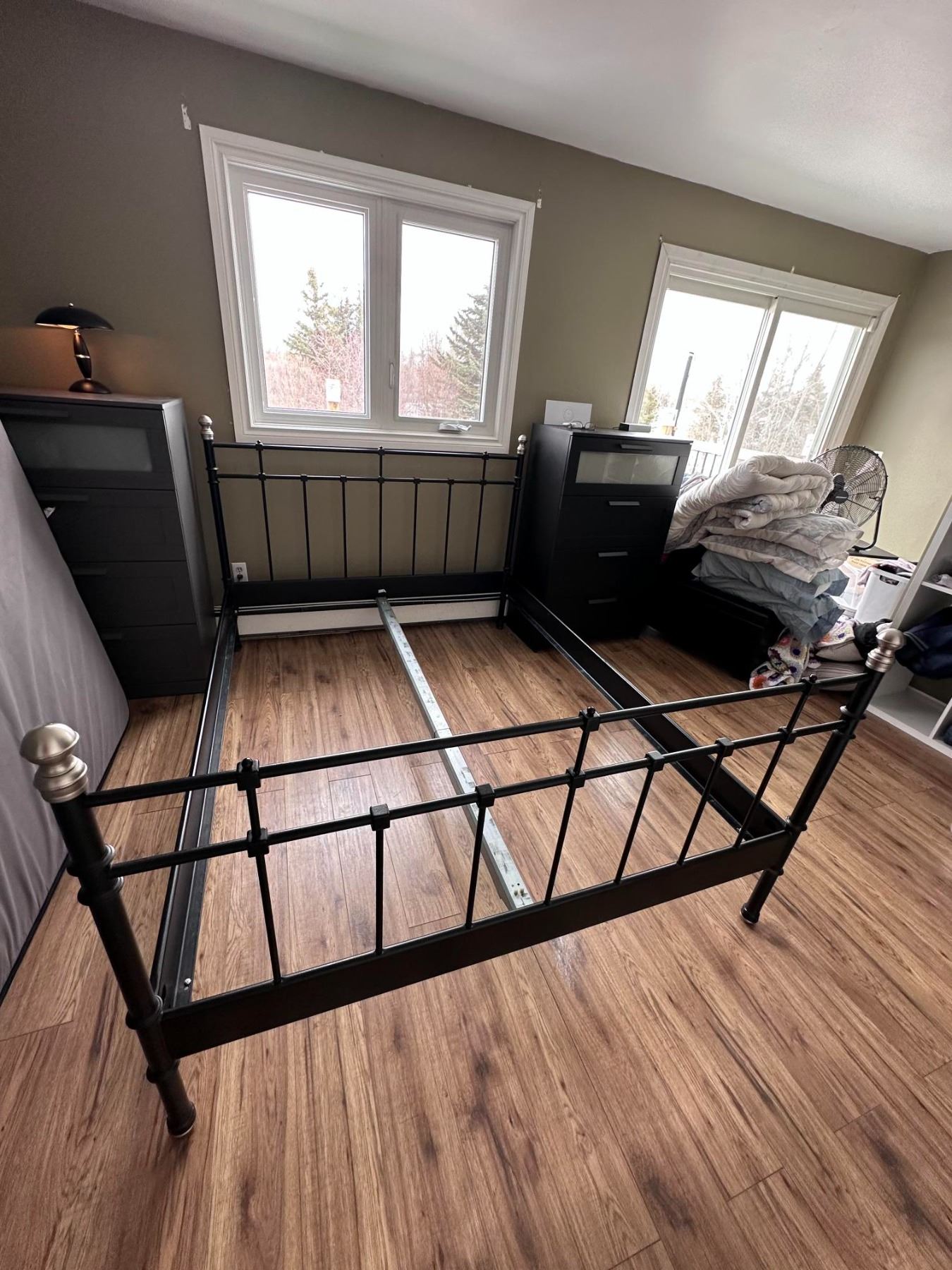 Queen sized Bed Frame, you get just the bed frame, has the slats for it as well...sold as is / where is...used