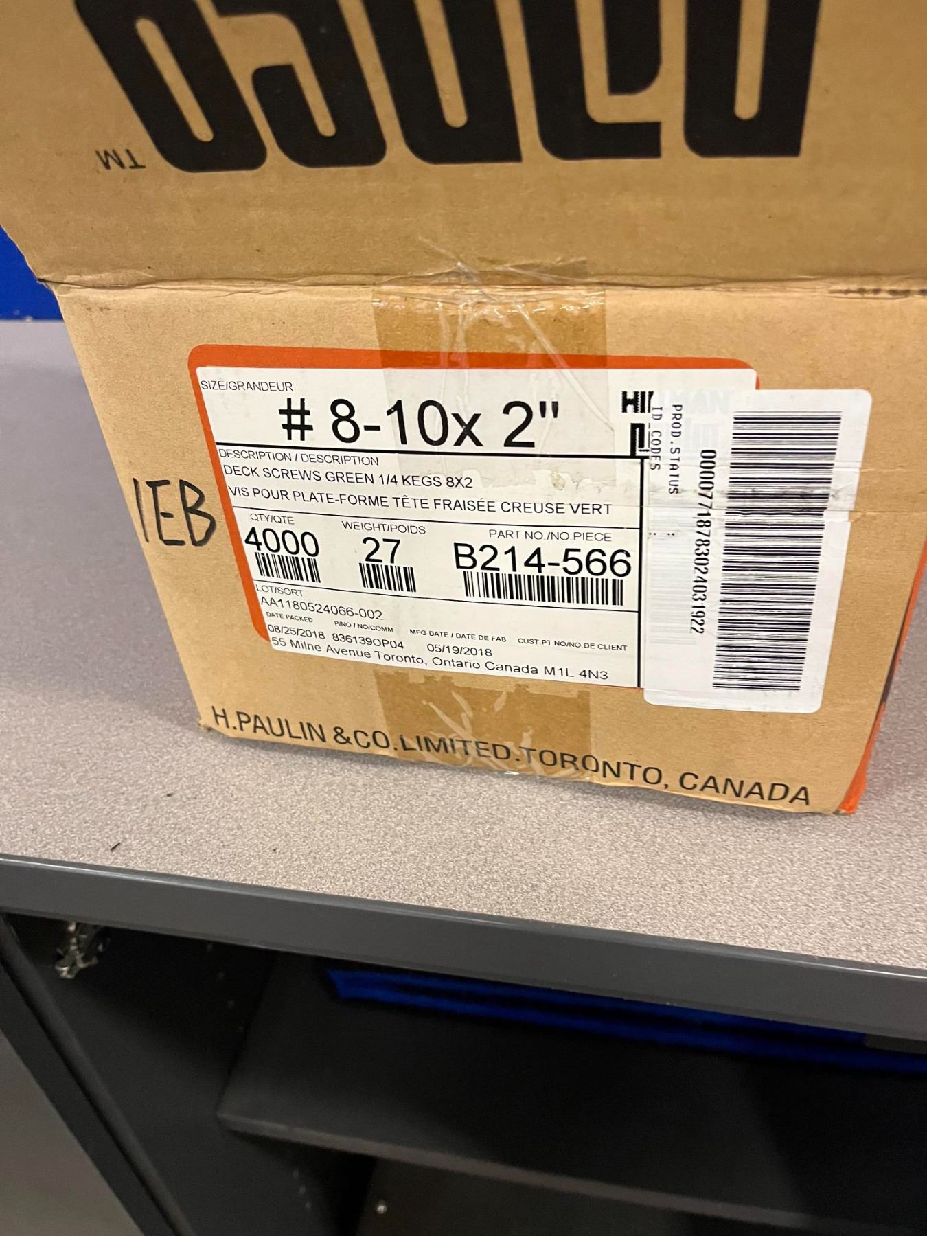 Lot 166f 1 Box Of 8x10x2" Deck Screws