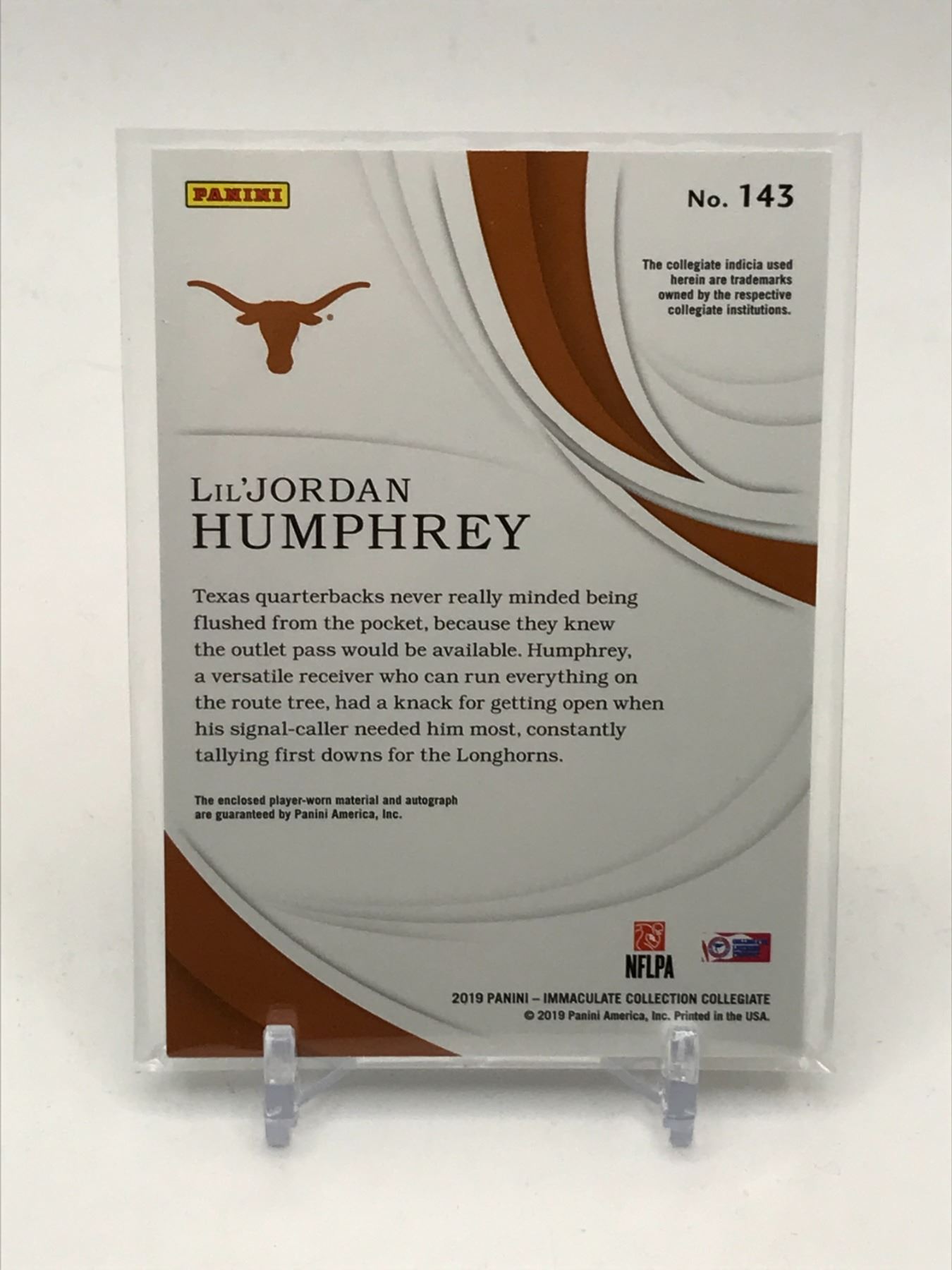 Lot 17 2020 PANINI IMMACULATE COLLECTION COLLEGIATE LIL' JORDAN HUMPHREY SIGNED PATCH TRADING CARD 23/25