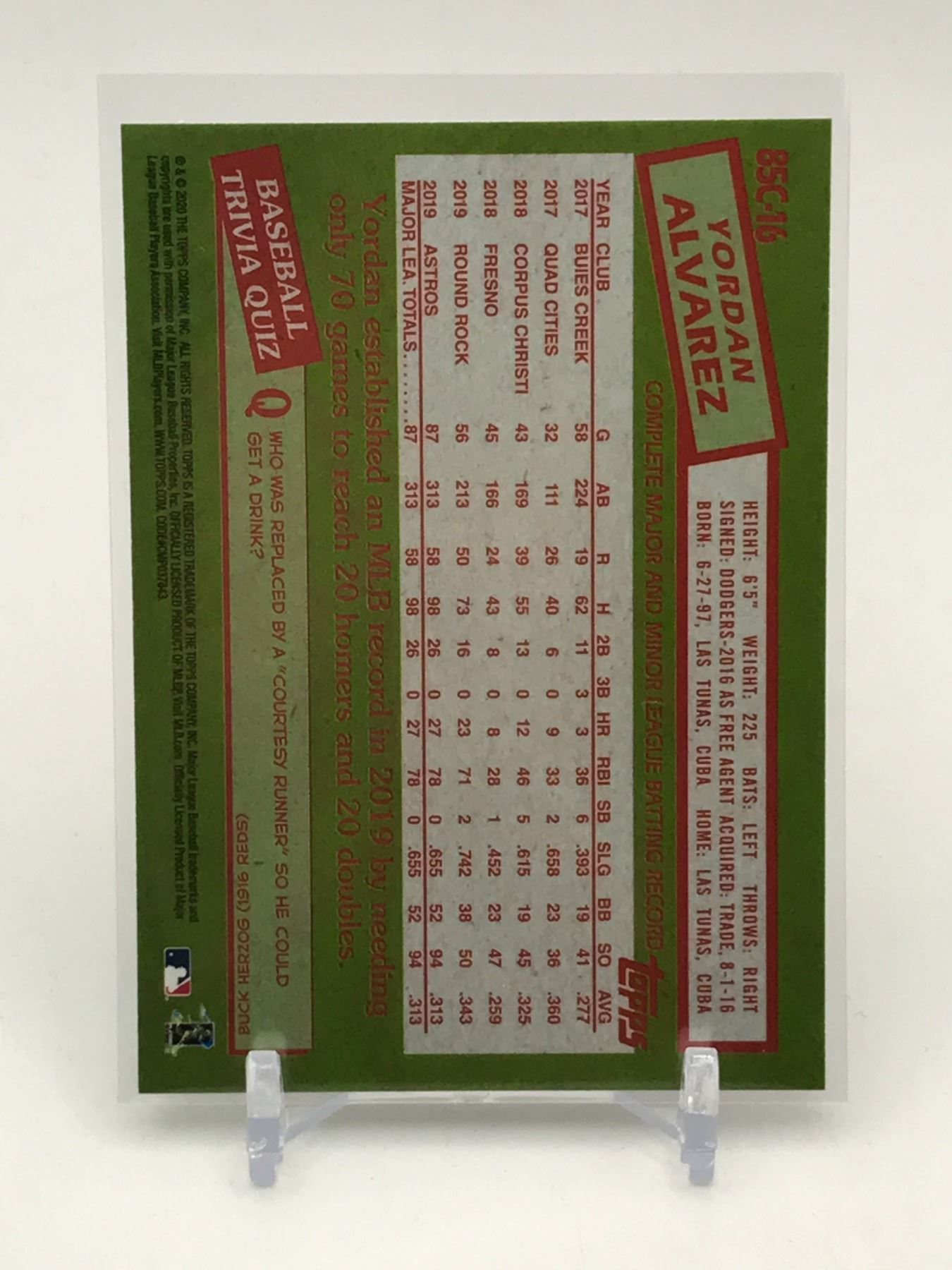 Lot 68 2020 TOPPS YORDAN ALVAREZ BASEBALL ROOKIE TRADING CARD
