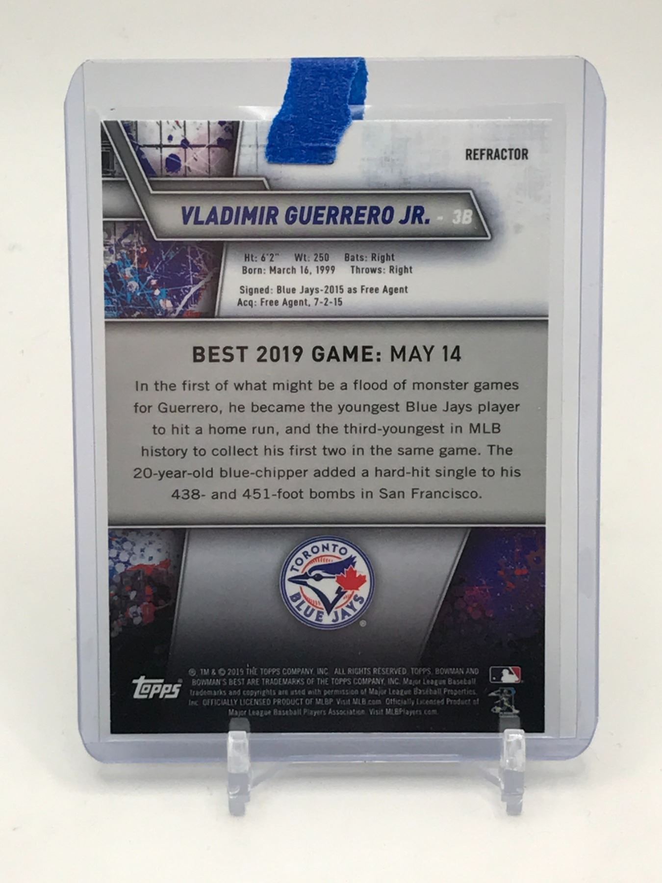Lot 73 2019 TOPPS BOWMAN'S BEST VLADIMIR GUERRERO JR ROOKIE TRADING CARD