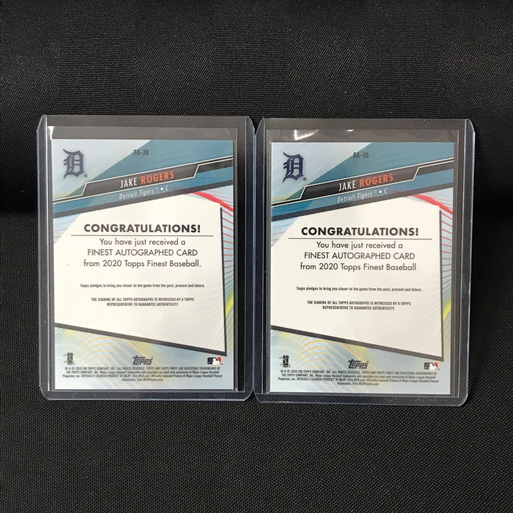Lot 110 LOT OF 2 2020 TOPPS FINEST JAKE ROGERS SIGNED ROOKIE TRADING CARDS - INCLUDING 66/99