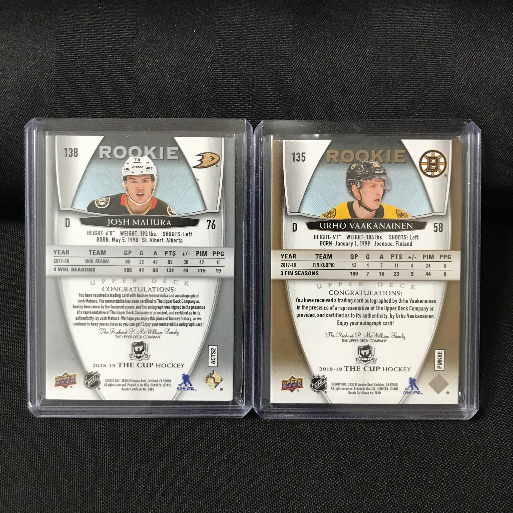 Lot 220 LOT OF 2 2018-19 UPPER DECK THE CUP HOCKEY SIGNED TRADING CARDS - 214/249 & 09/36