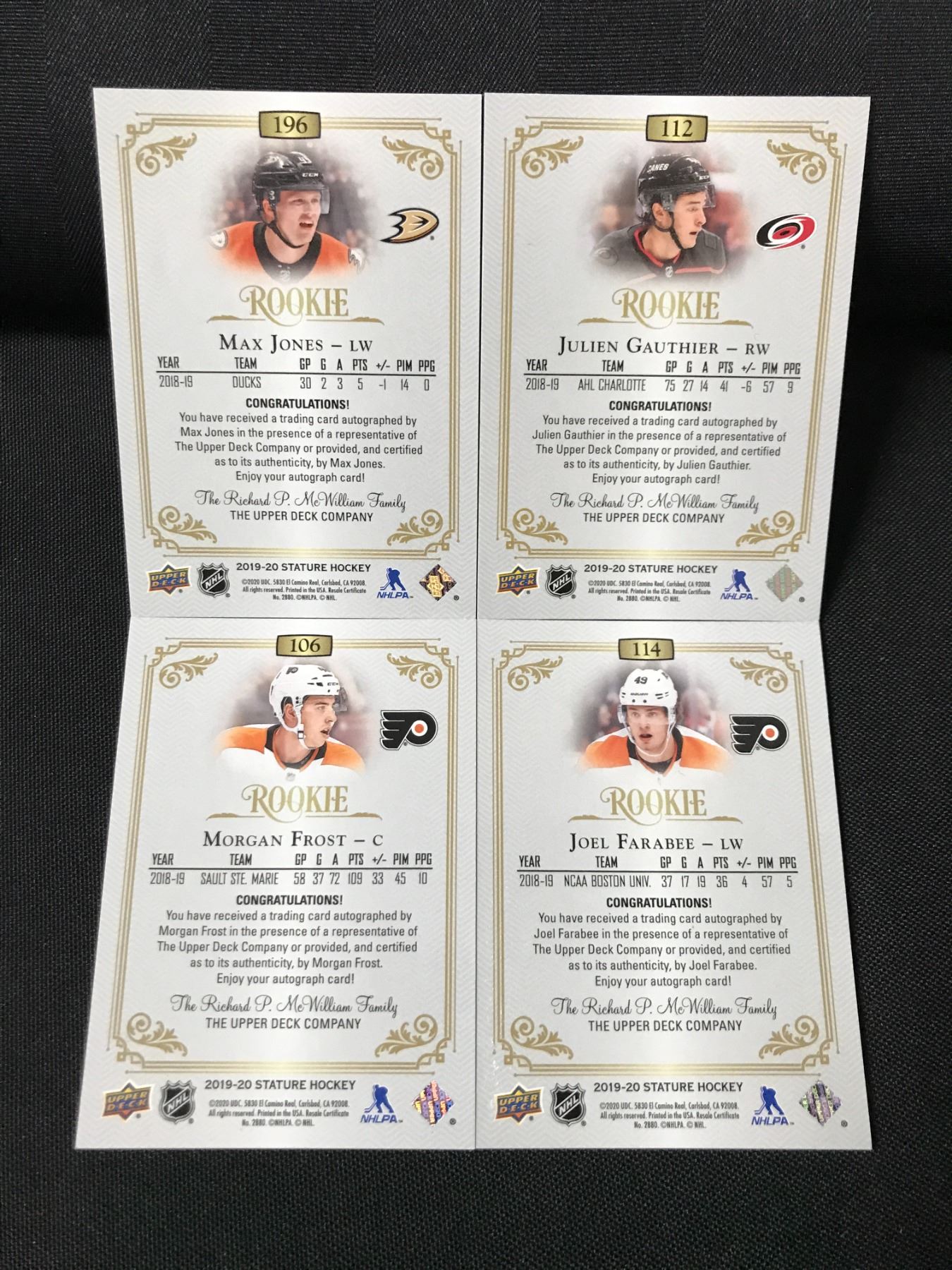 Lot 228 LOT OF 4 STATURE ROOKIE SIGNED HOCKEY TRADING CARDS