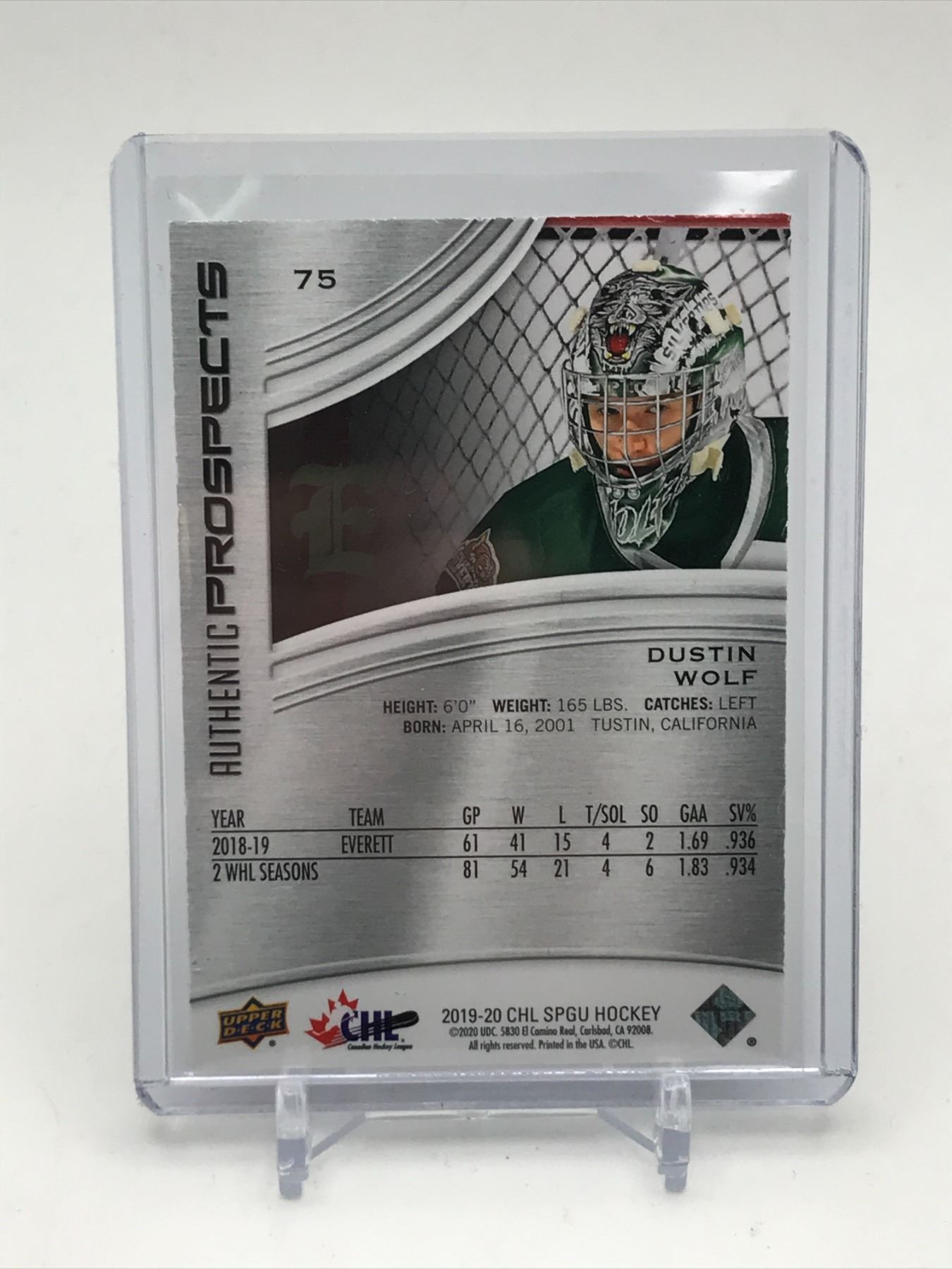Lot 263 2019-20 UPPER DECK CHL SPGU HOCKEY DUSTIN WOLF TRADING CARD 101/199