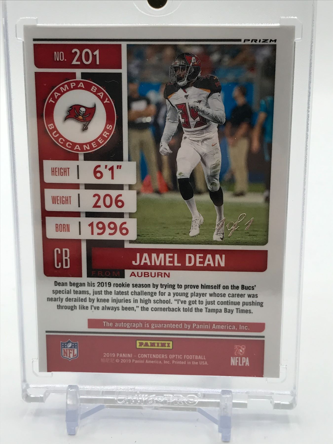Lot 289 2019 PANINI CONTEDERS OPTIC FOOTBALL JAMEL DEAN SIGNED ROOKIE TICKET TRADING CARD