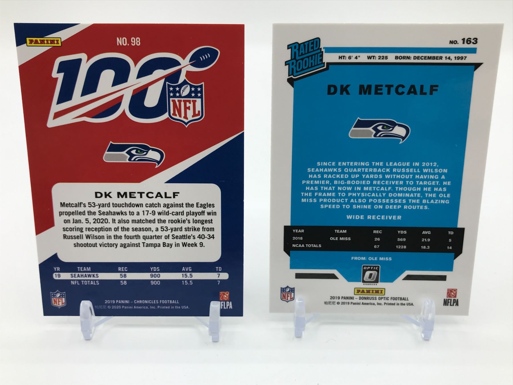 Lot 316 LOT OF 2 2019 PANINI DK METCALF ROOKIE TRADING CARDS