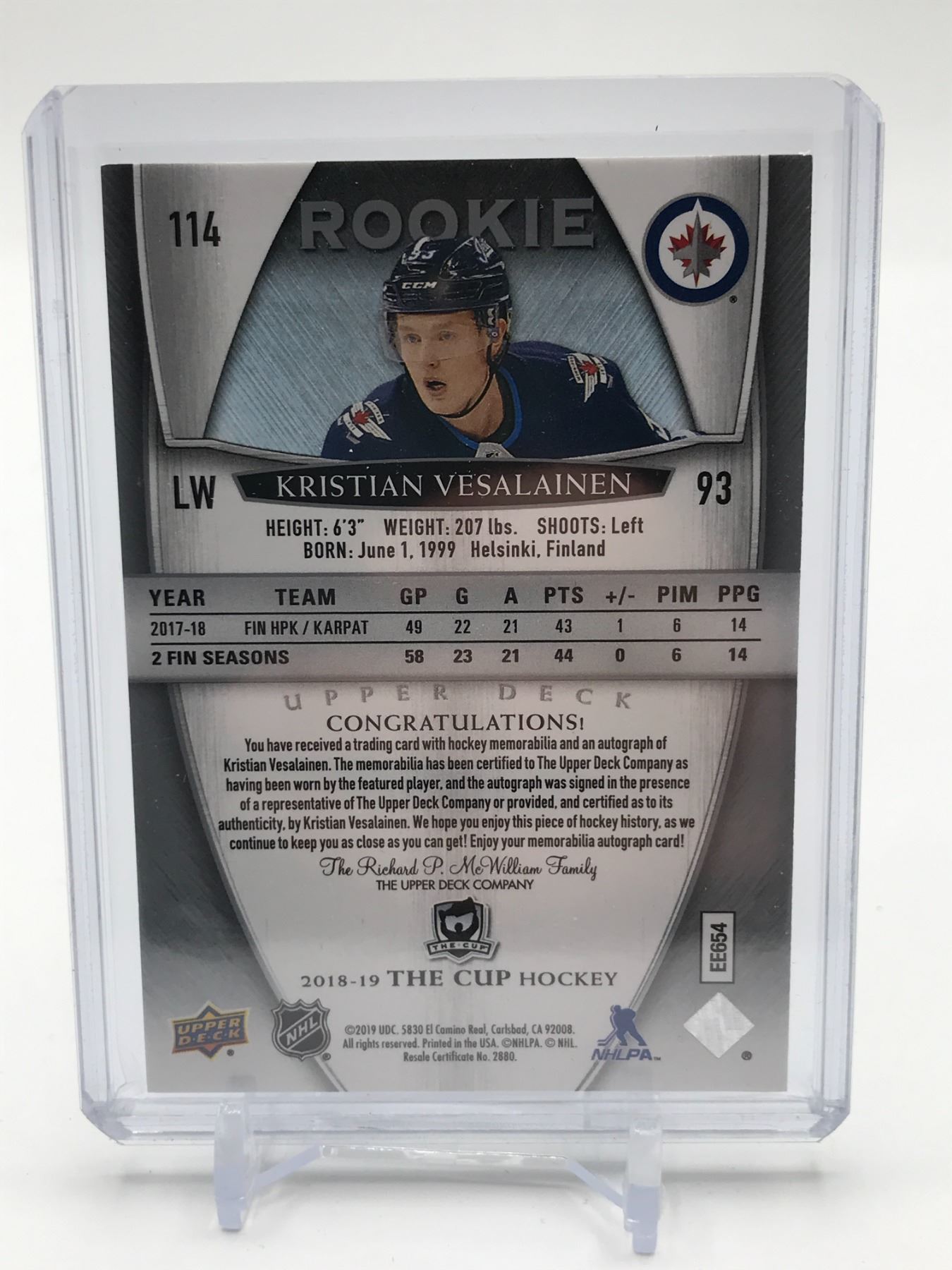 Lot 331 2018-19 UPPER DECK THE CUP HOCKEY KRISTIAN VESALAINEN SIGNED TRADING CARD 207/249