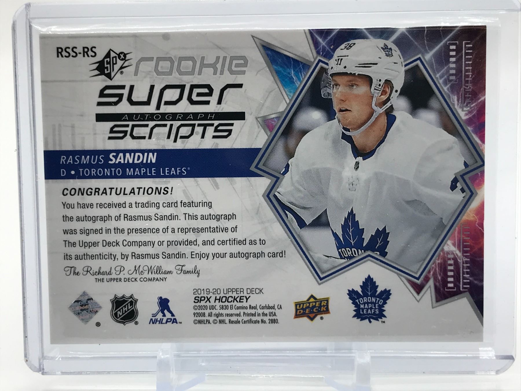 Lot 337 2019-20 UPPER DECK SPX HOCKEY RASMUS SANDIN SIGNED TRADING CARD