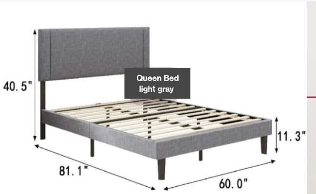 Brand new Tulip Bed frames- New in Box (Grey Fabric) Size- 001 Queen Retail Price- $470