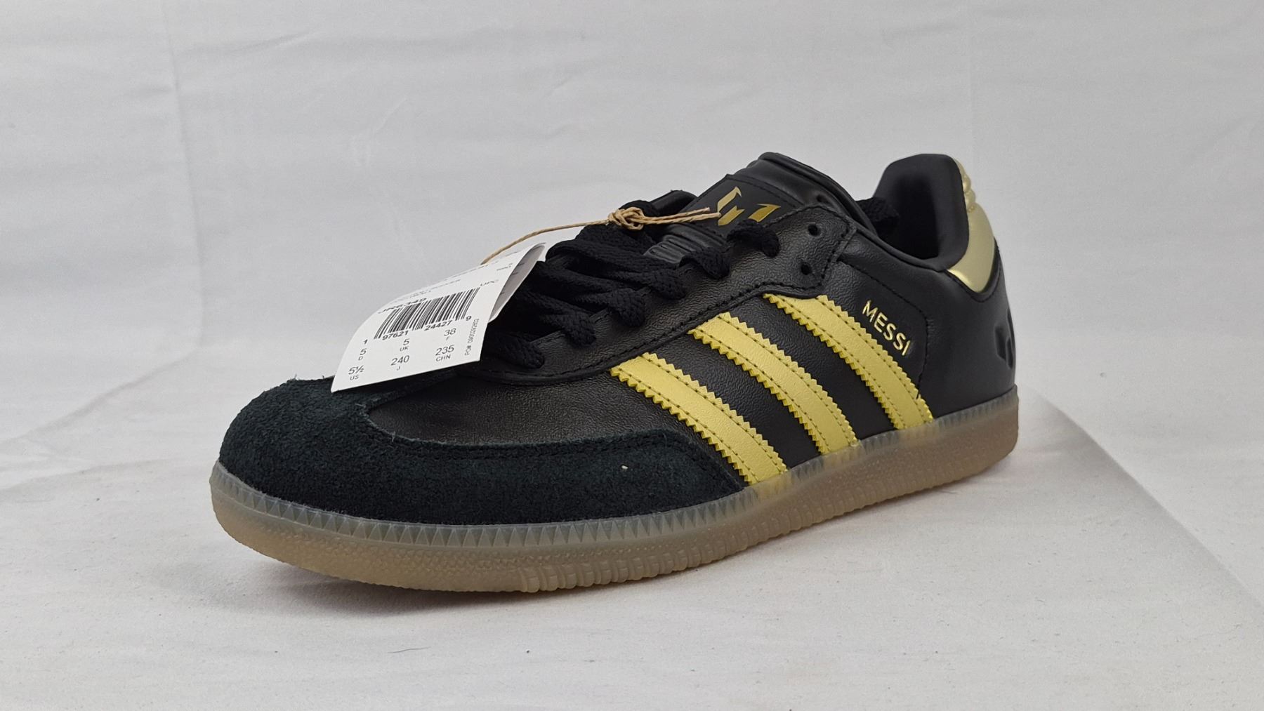 New Pair of Adidas Samba Messi J (Cblack/Goldmt/Gum4) Size- 5.5