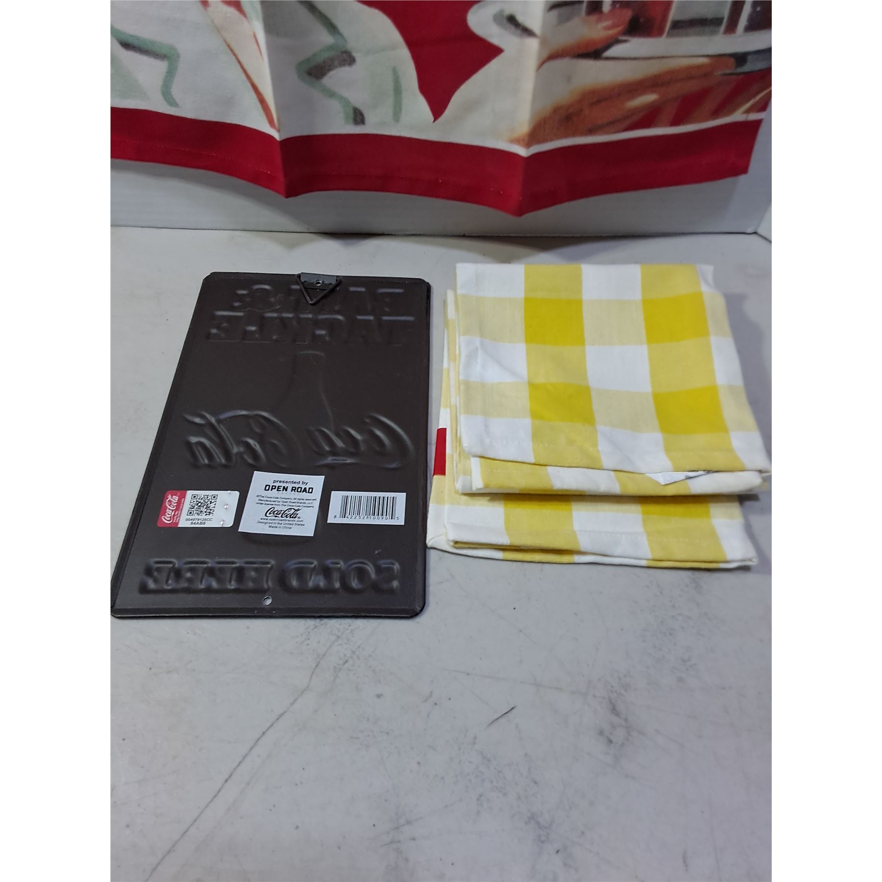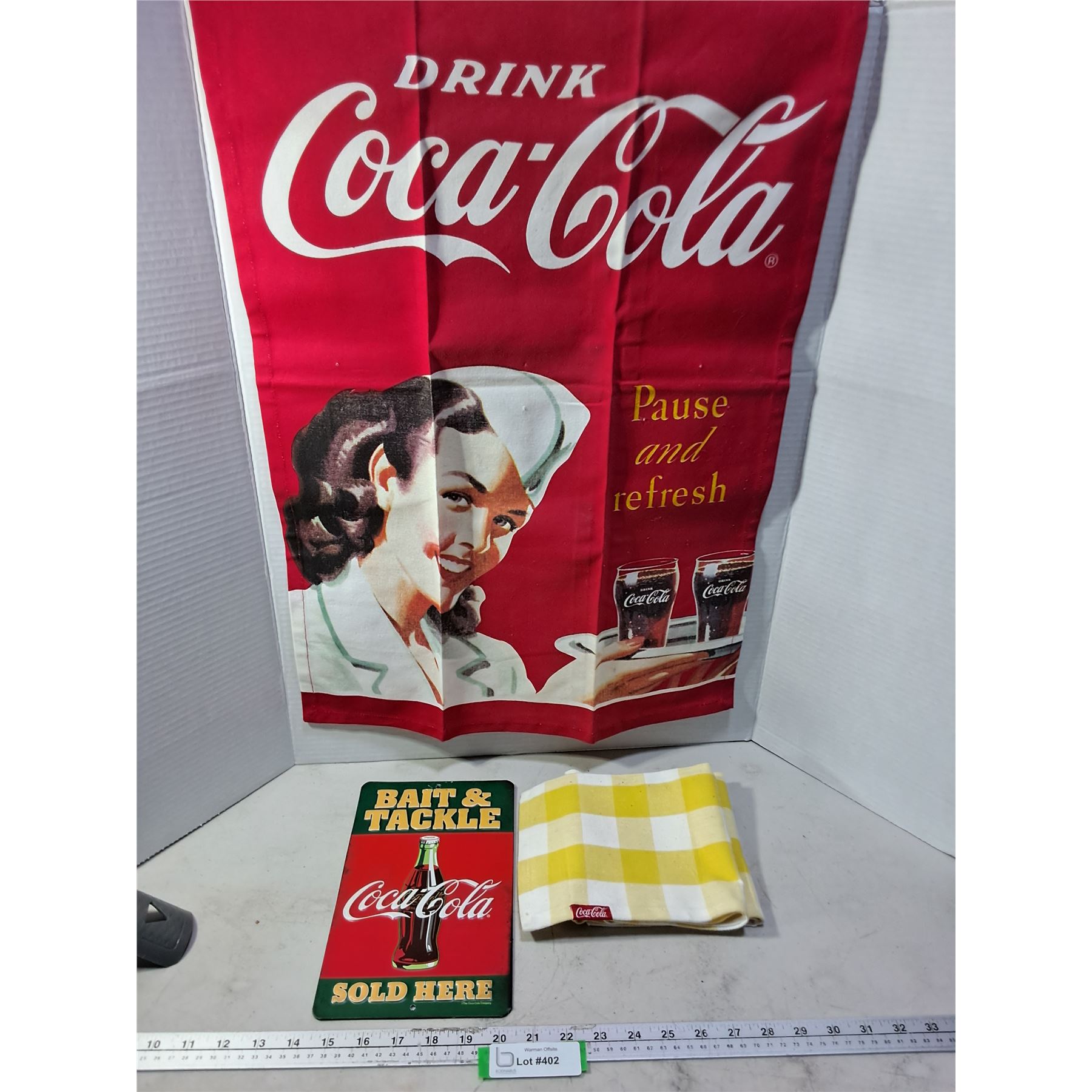 Lot 402 Retro Metal Coca-Cola Sign & Tea Towels