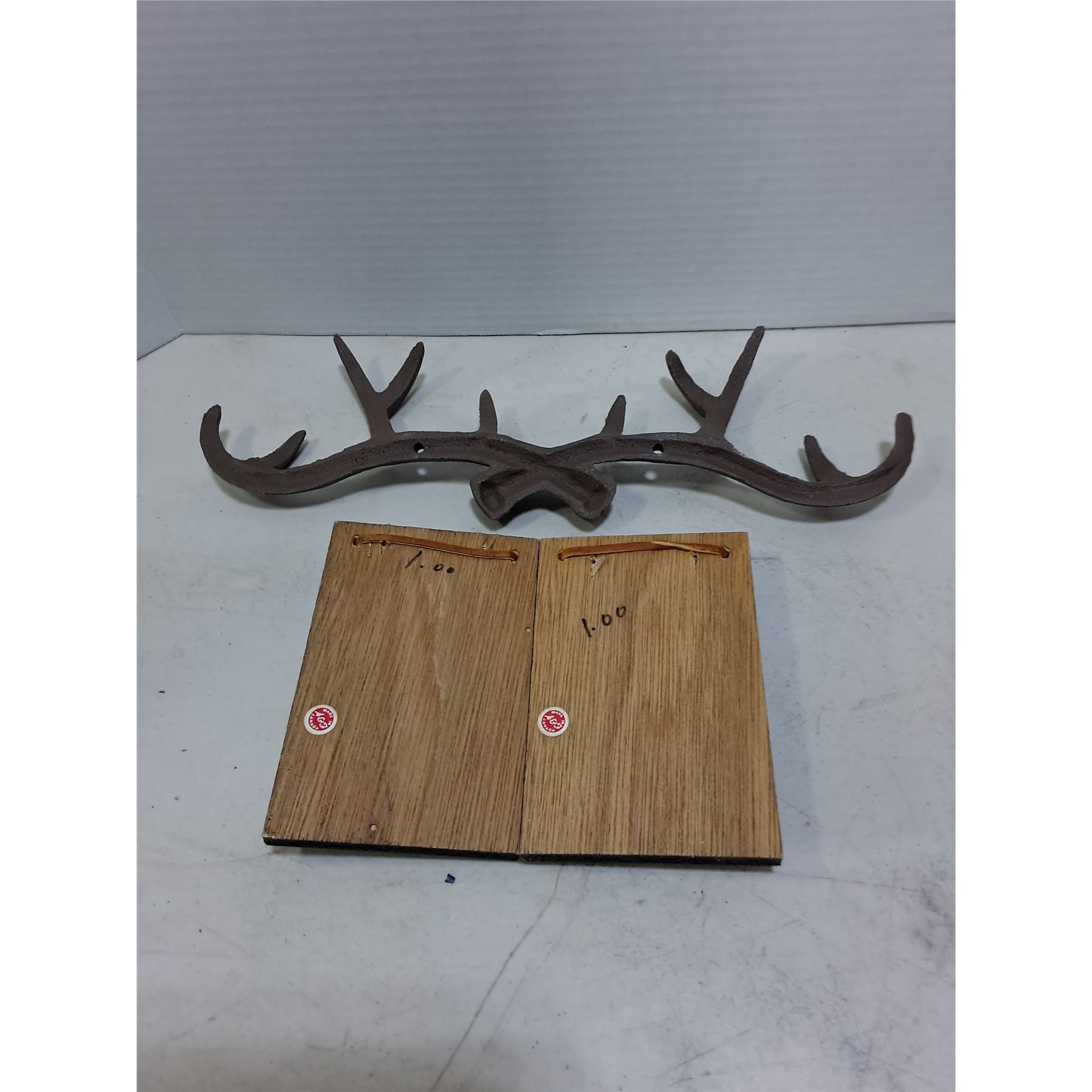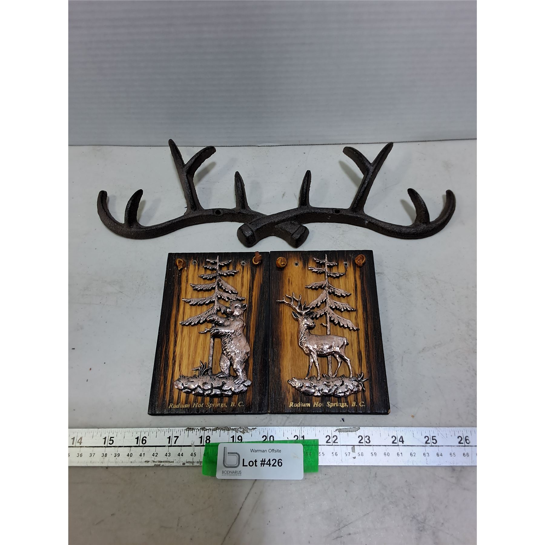Lot 426 Cast Iron Antlers & Ornamental Wooden "Radium Hot Springs" Wall Plaques