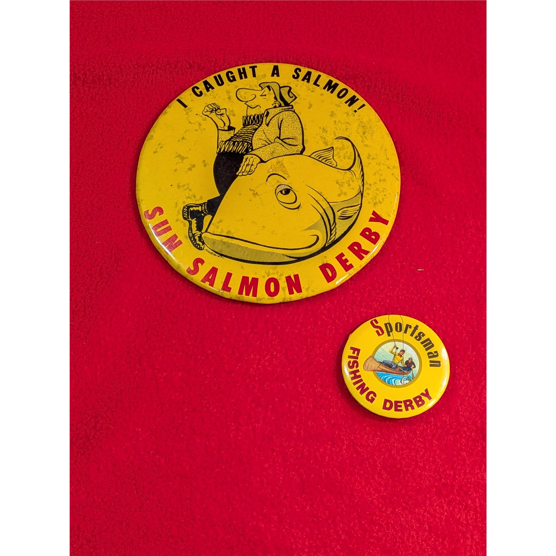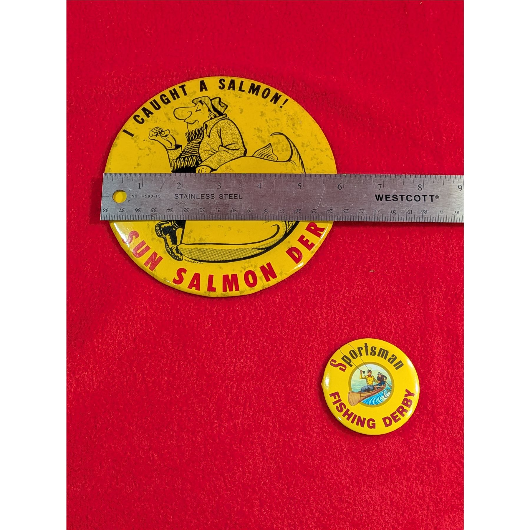 VINTAGE 1960's Salmon Fishing Derby(6") & Sportsman Fishing Badges