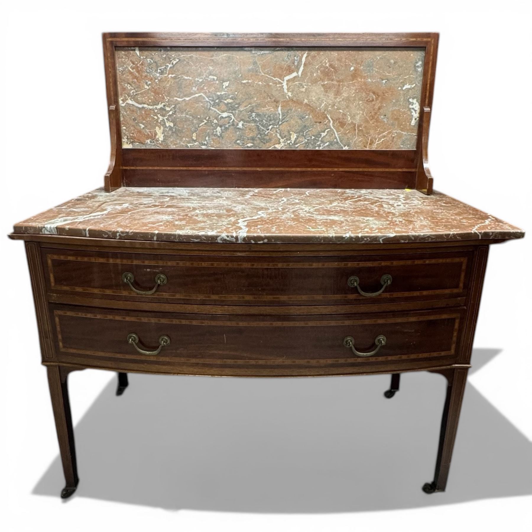Antique Wooden Washstand Featuring a Marble Top and Backsplash 42.5x20.5x47"