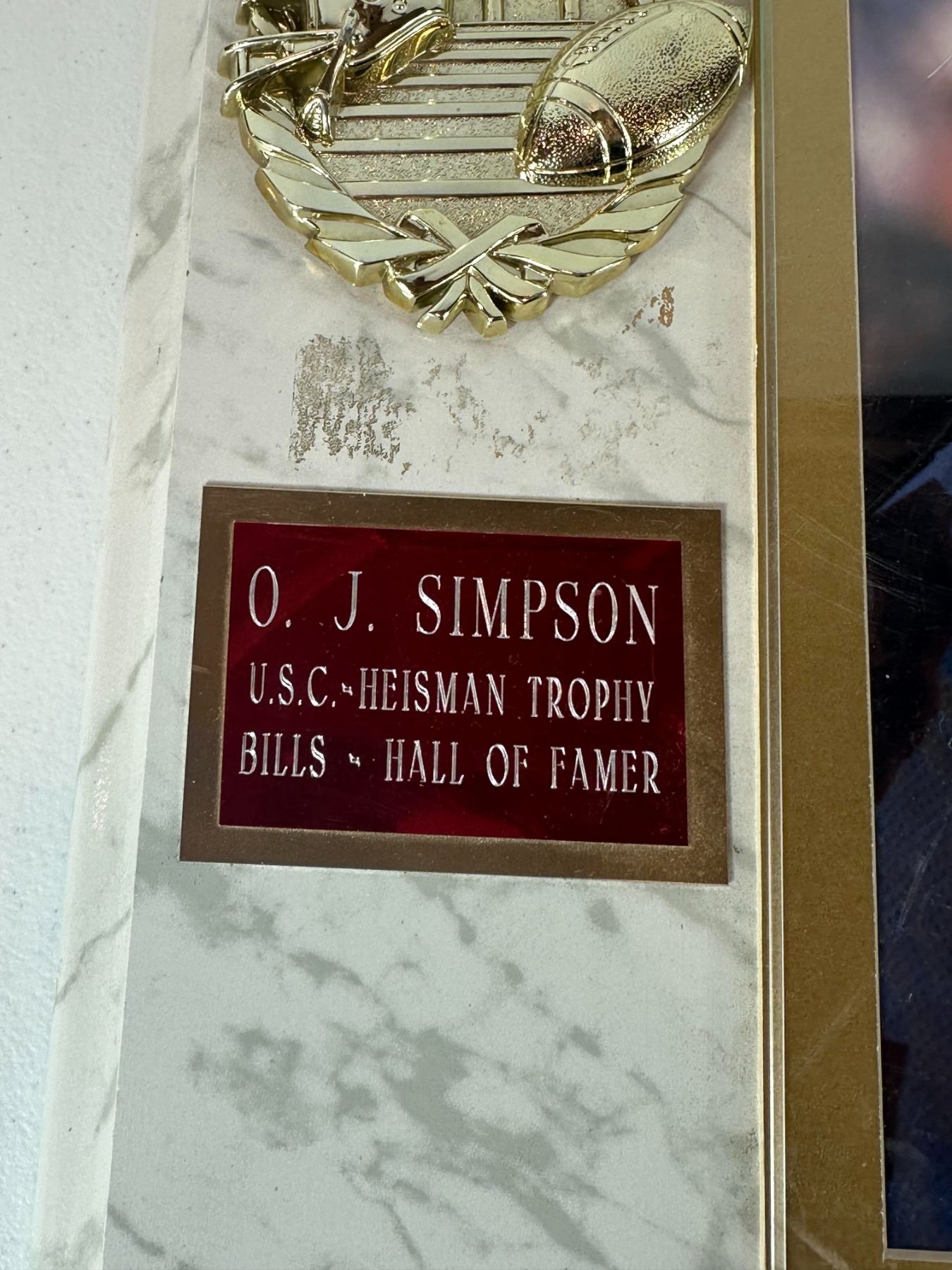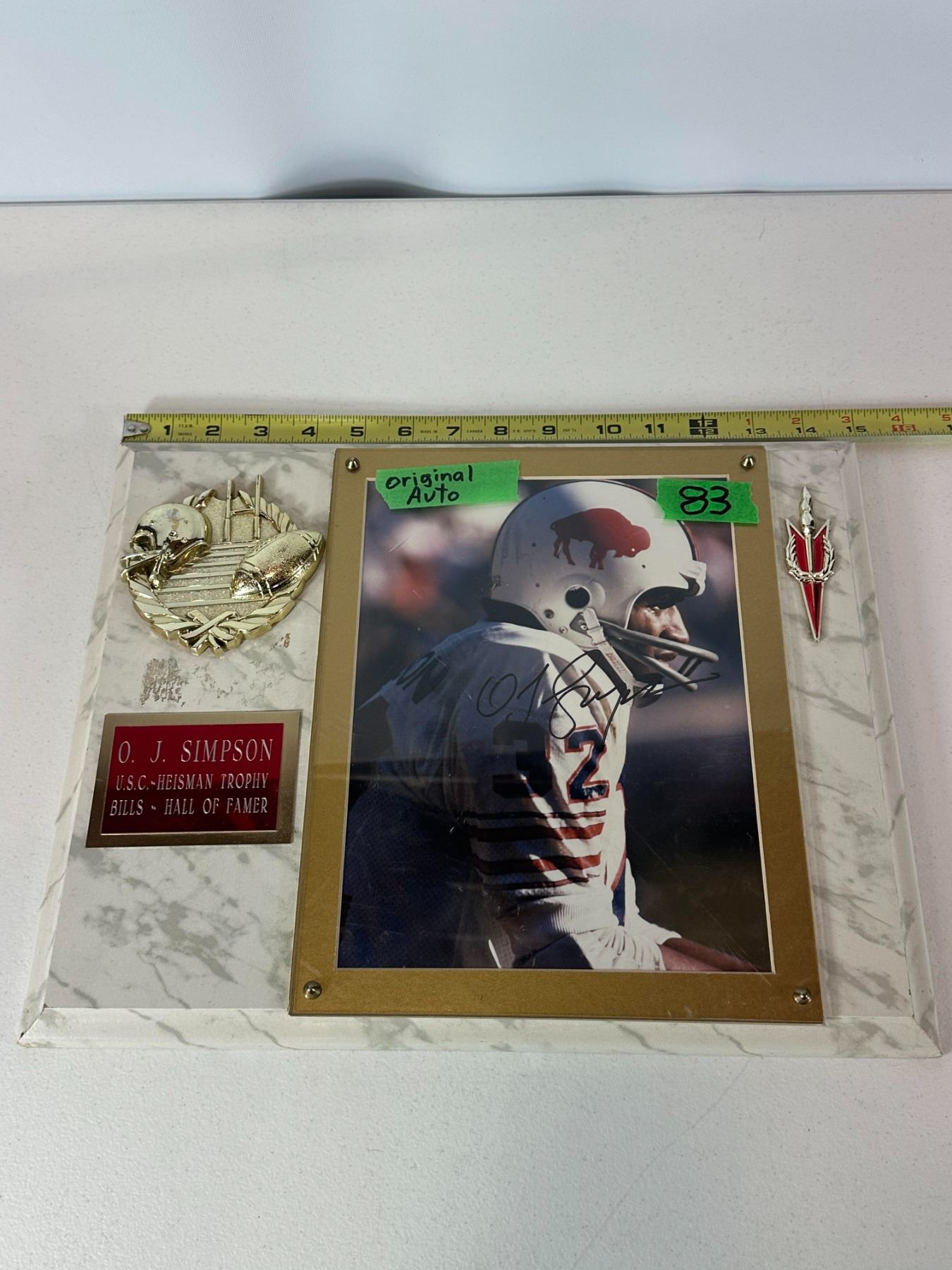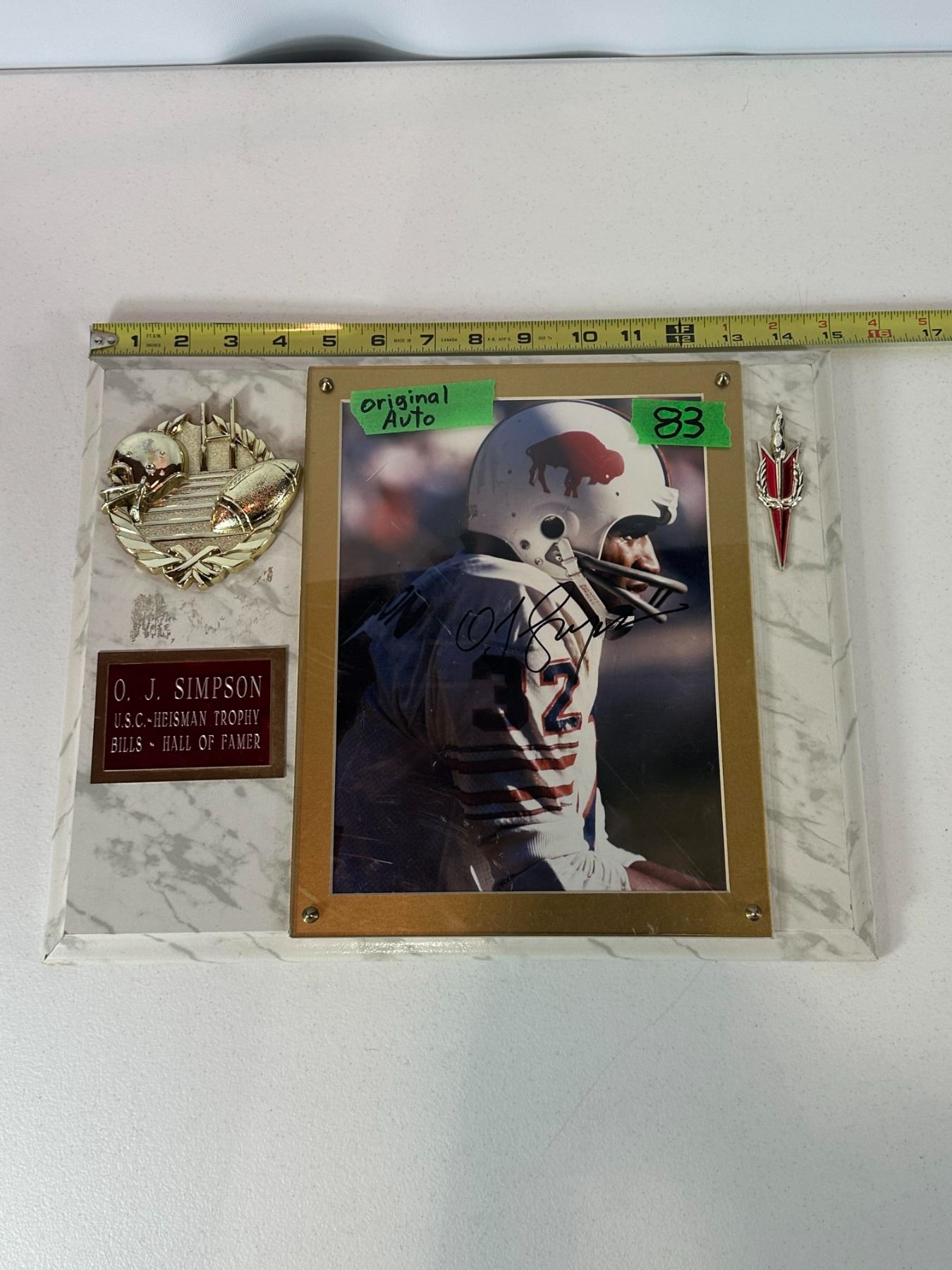 Lot 83 O.J. Simpson Autographed NFL Trophy Plaque with COA