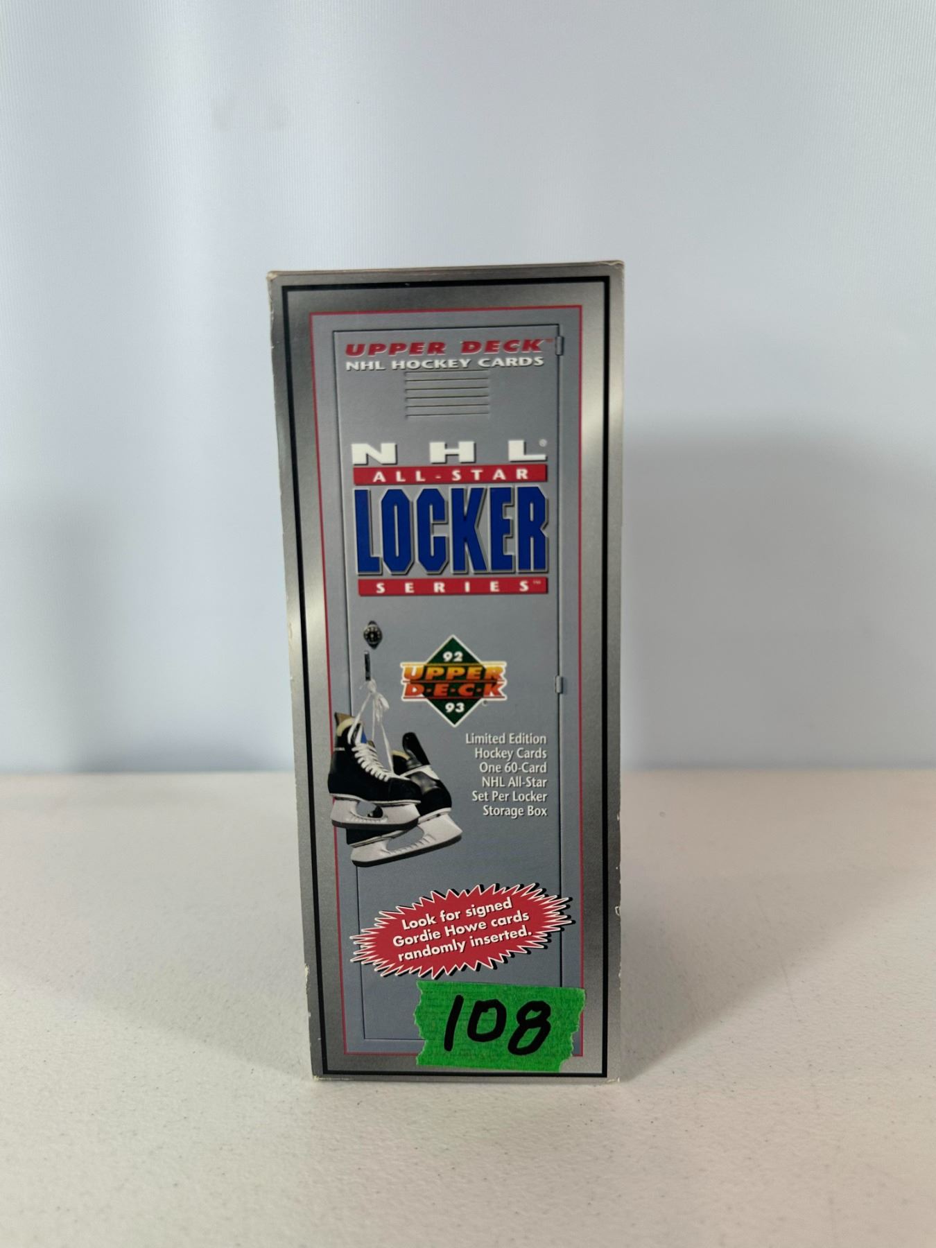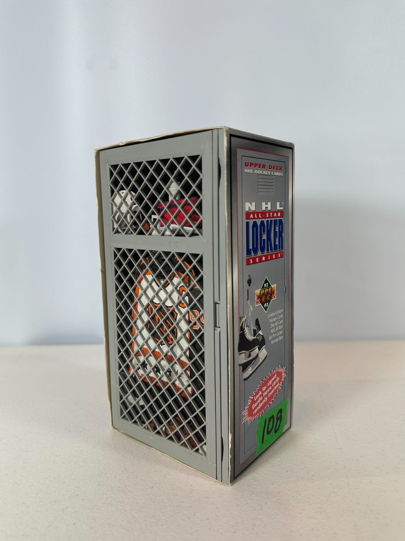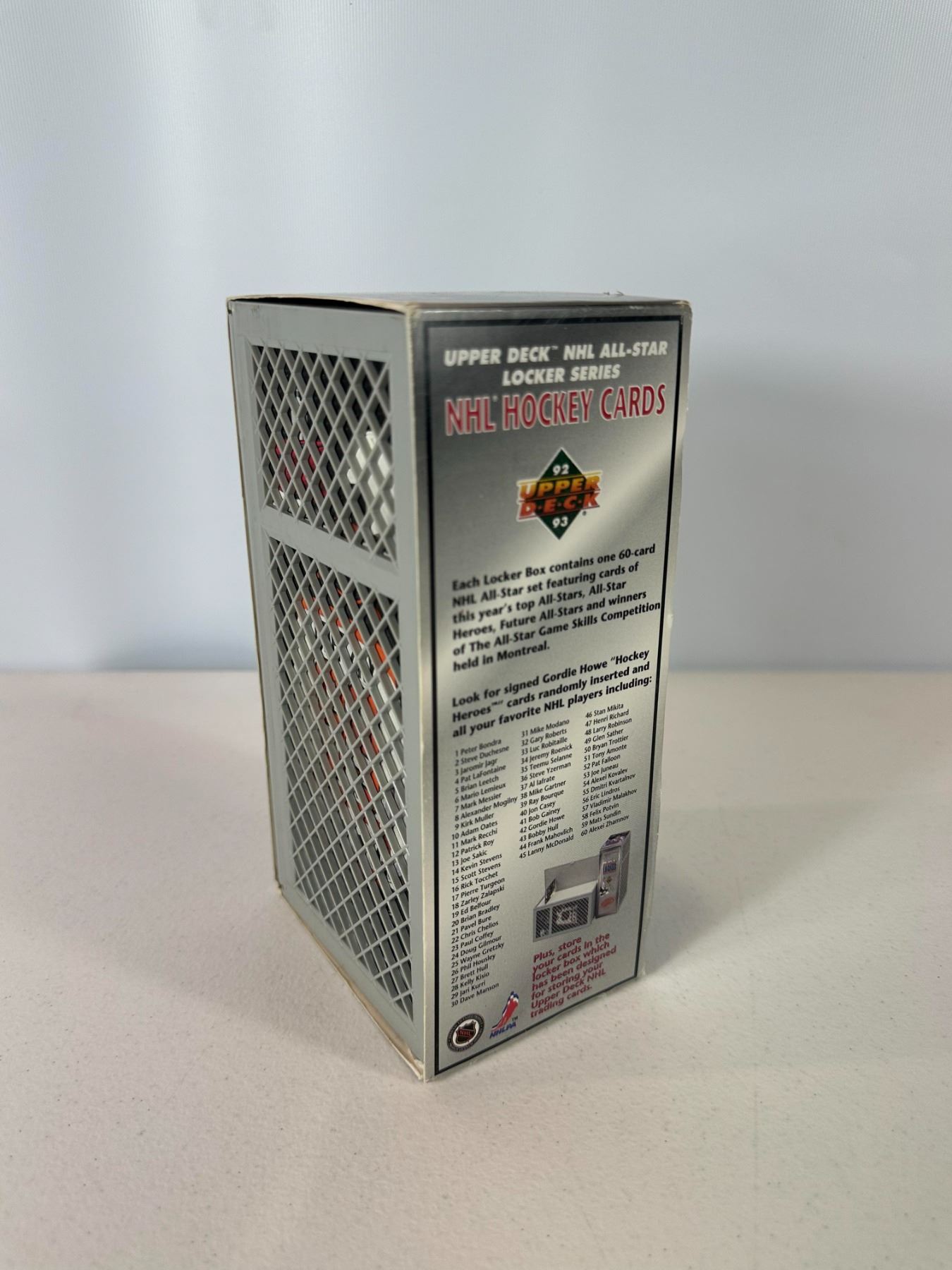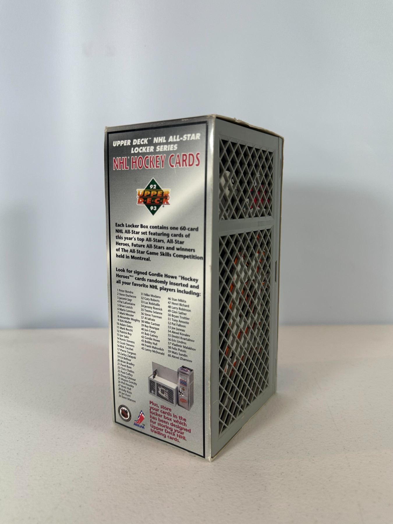 1992 Upper Deck NHL All-Star 'Locker Series' limited edition set housed in original locker-style display box. Includes hockey cards and themed contents as issued. A unique collectible presentation piece from Upper Deck’s early 1990s releases.