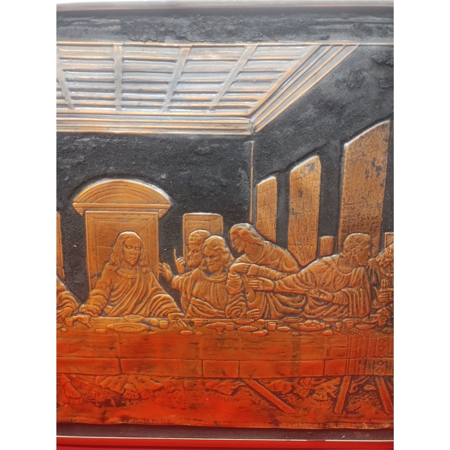 In good shape overall, minor scuffs and dings, the size is 21 inches by 12 inches