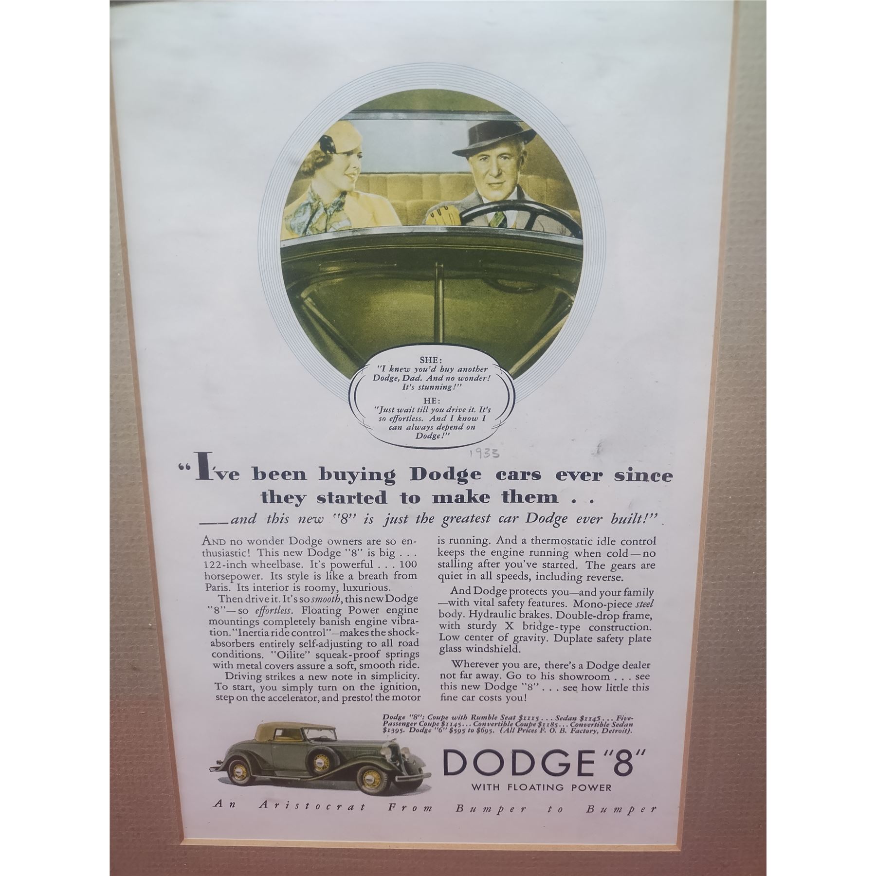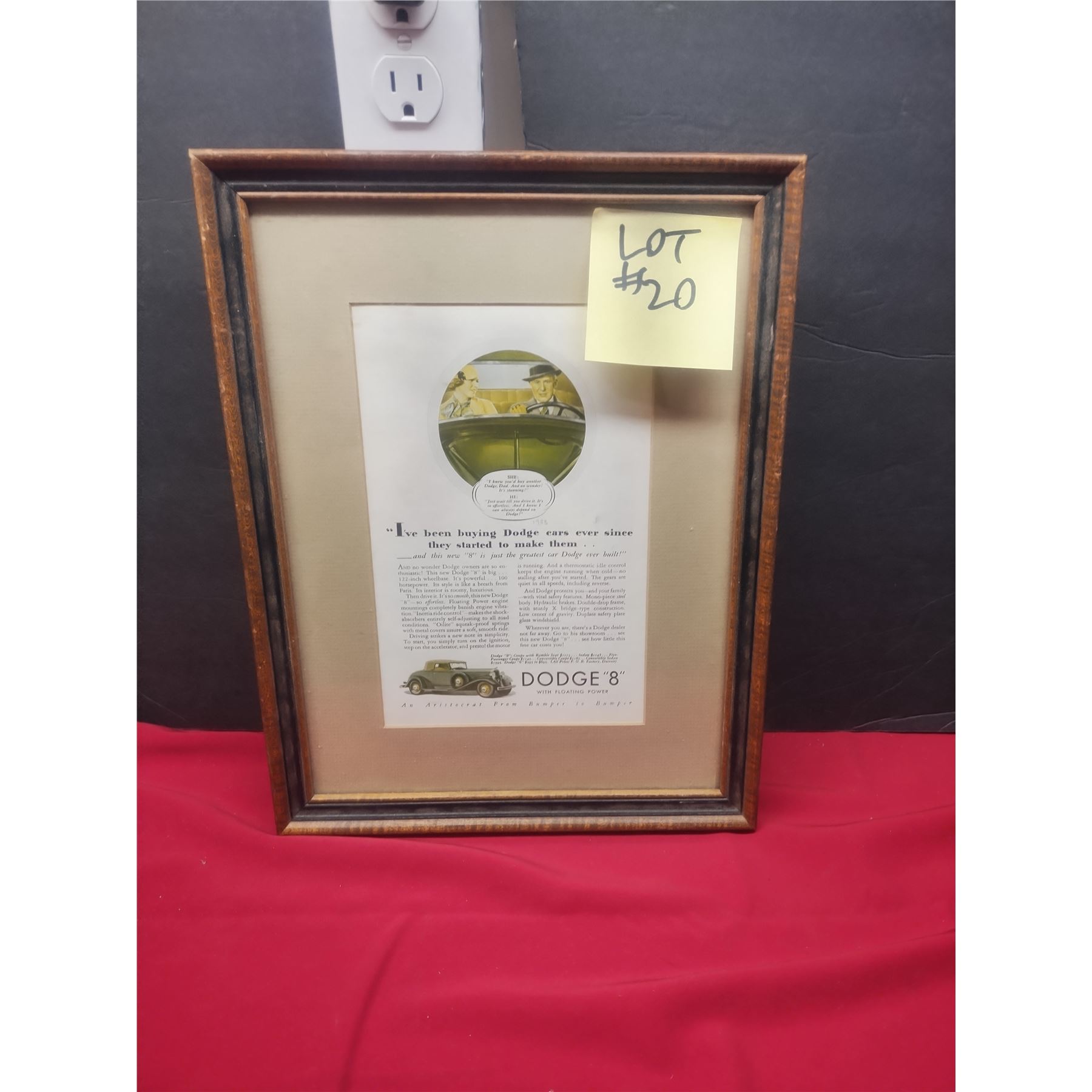 Great collectors item, a 1930ish Dodge Car ad, the frame is in good shape and ready to be displayed.