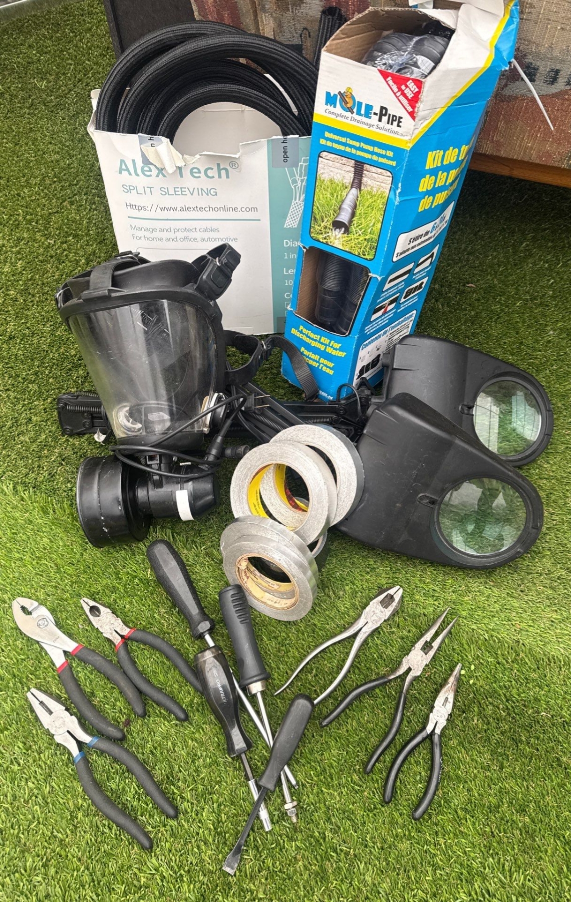 Lot 85 Mole-Pipe Twist&Seal Xpanding Drainage Pipe Kit Alex Tech Conduit Respirator Mask & More
