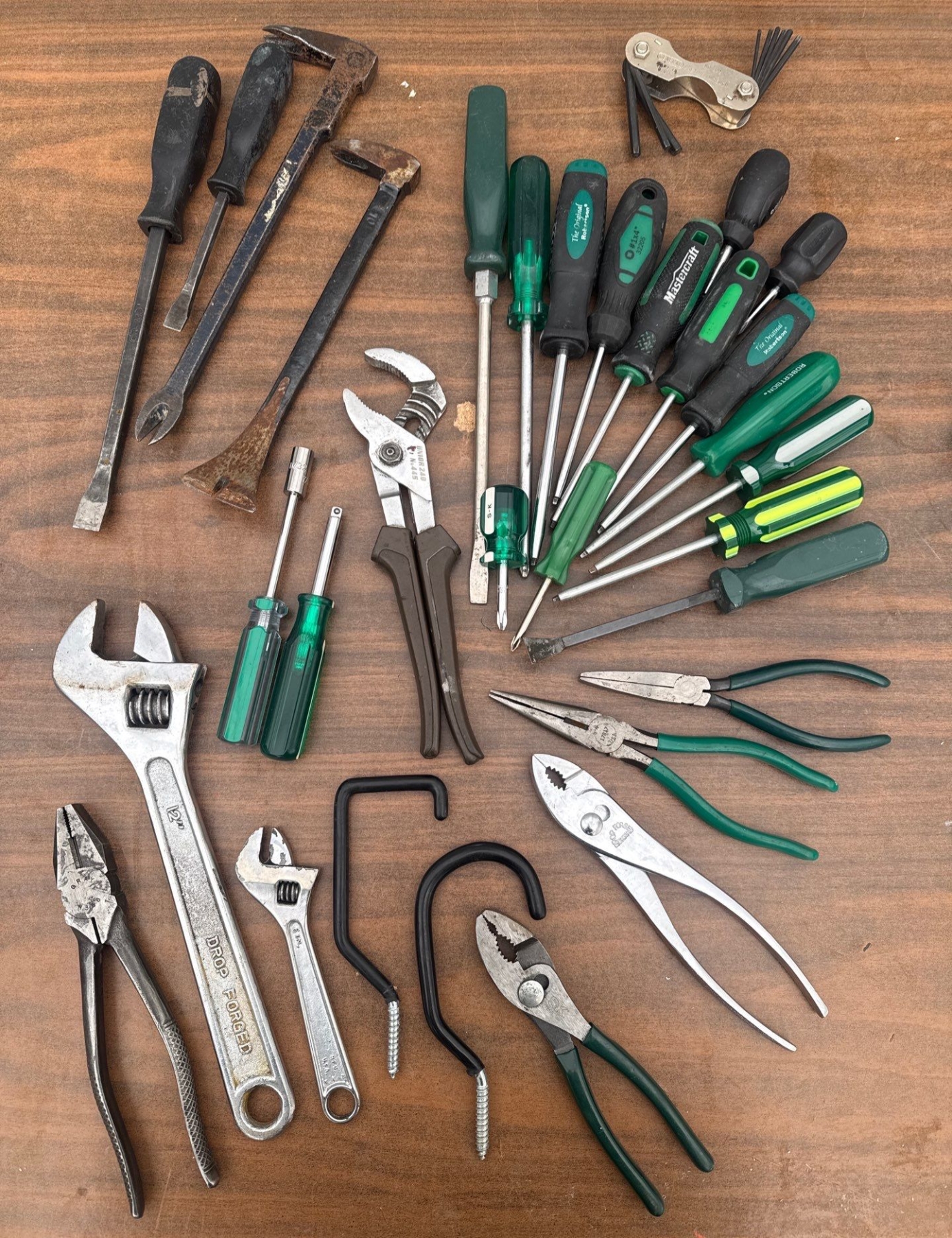 Lot 88 Green & Black Hand Tool Collection - Cresent Wrenches Channel Lock Assorted Ppliers & Drivers