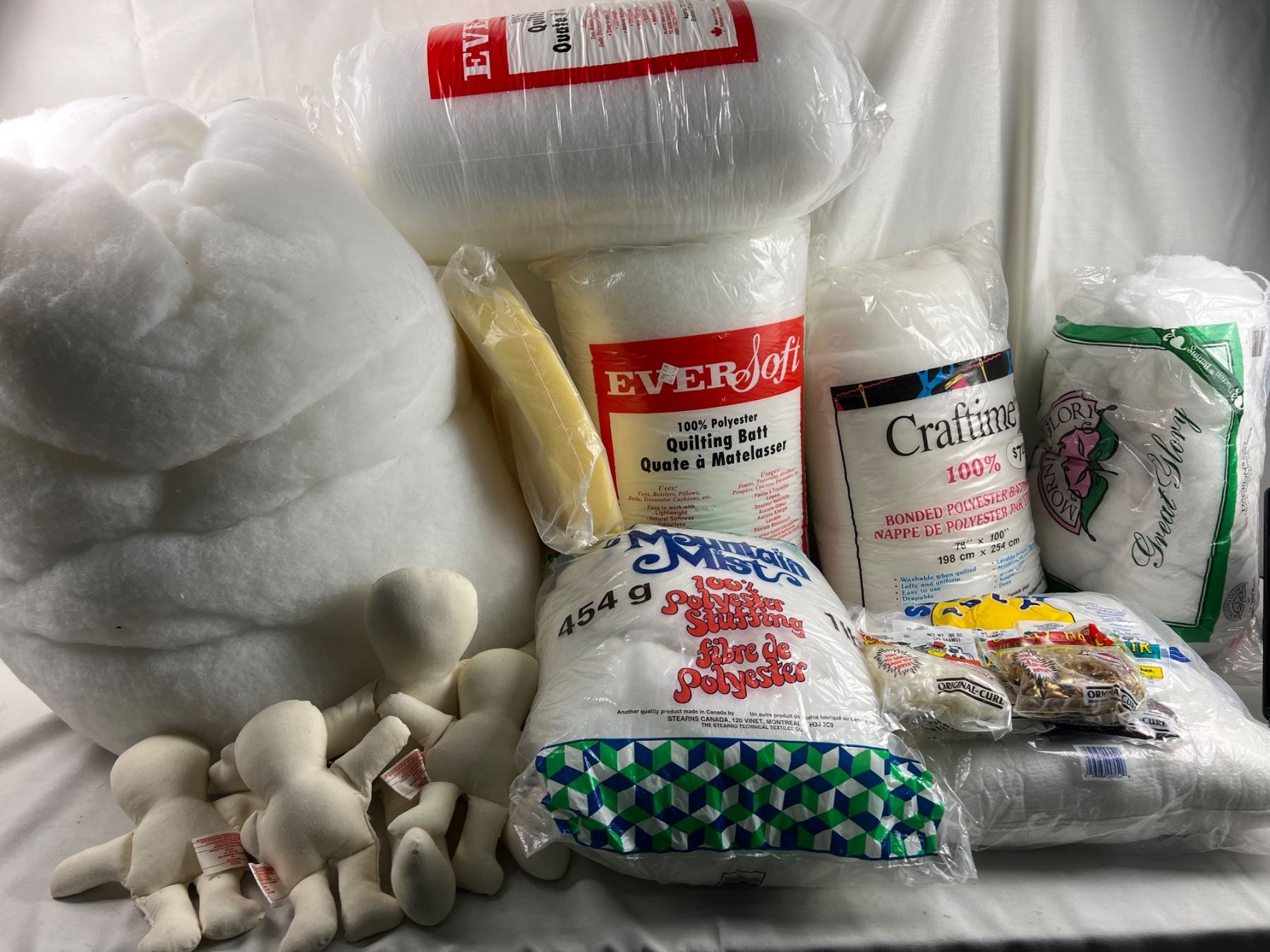 Includes, Quilting Batting, Poly Spun pillow form, doll figures, and more