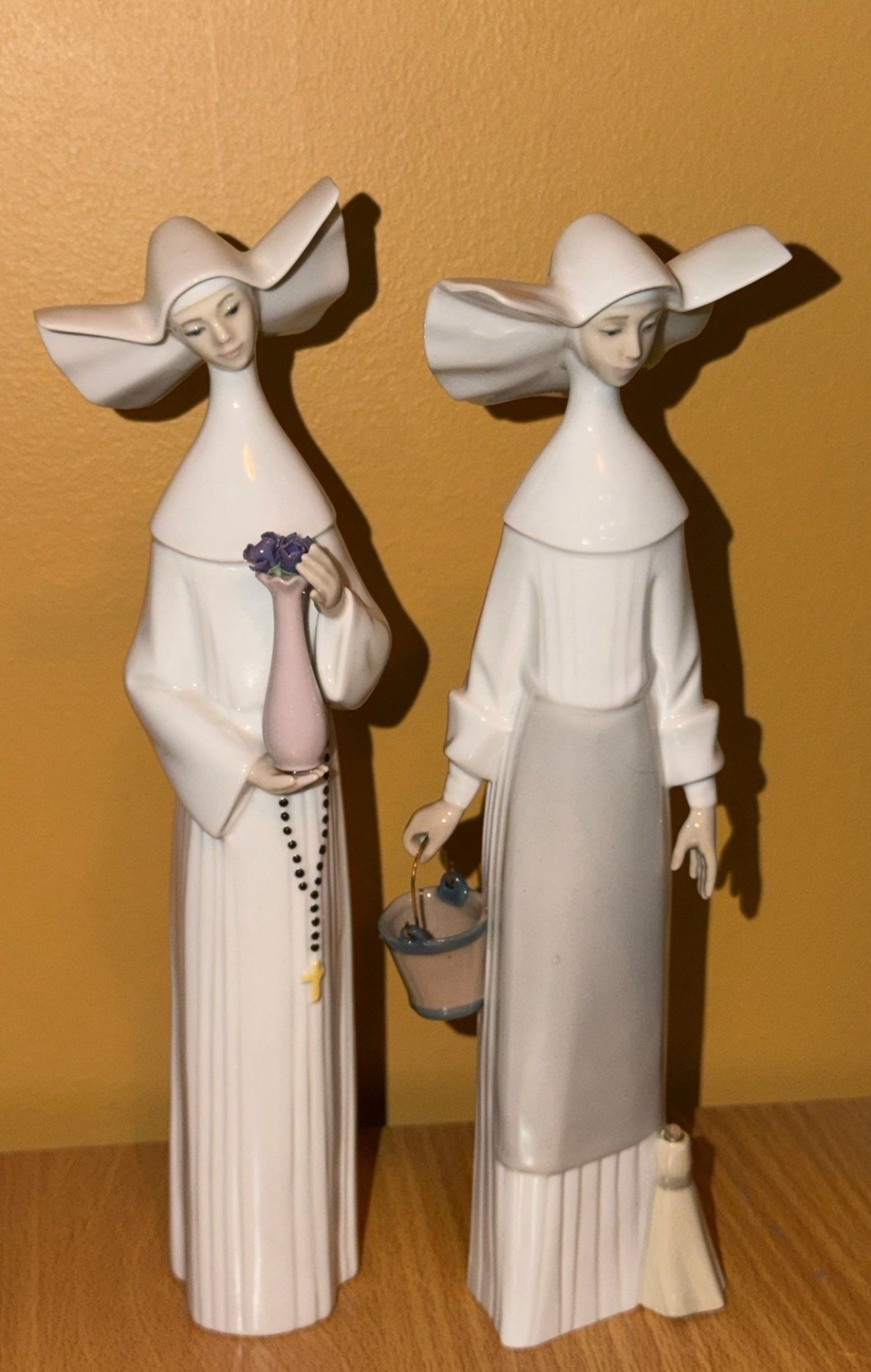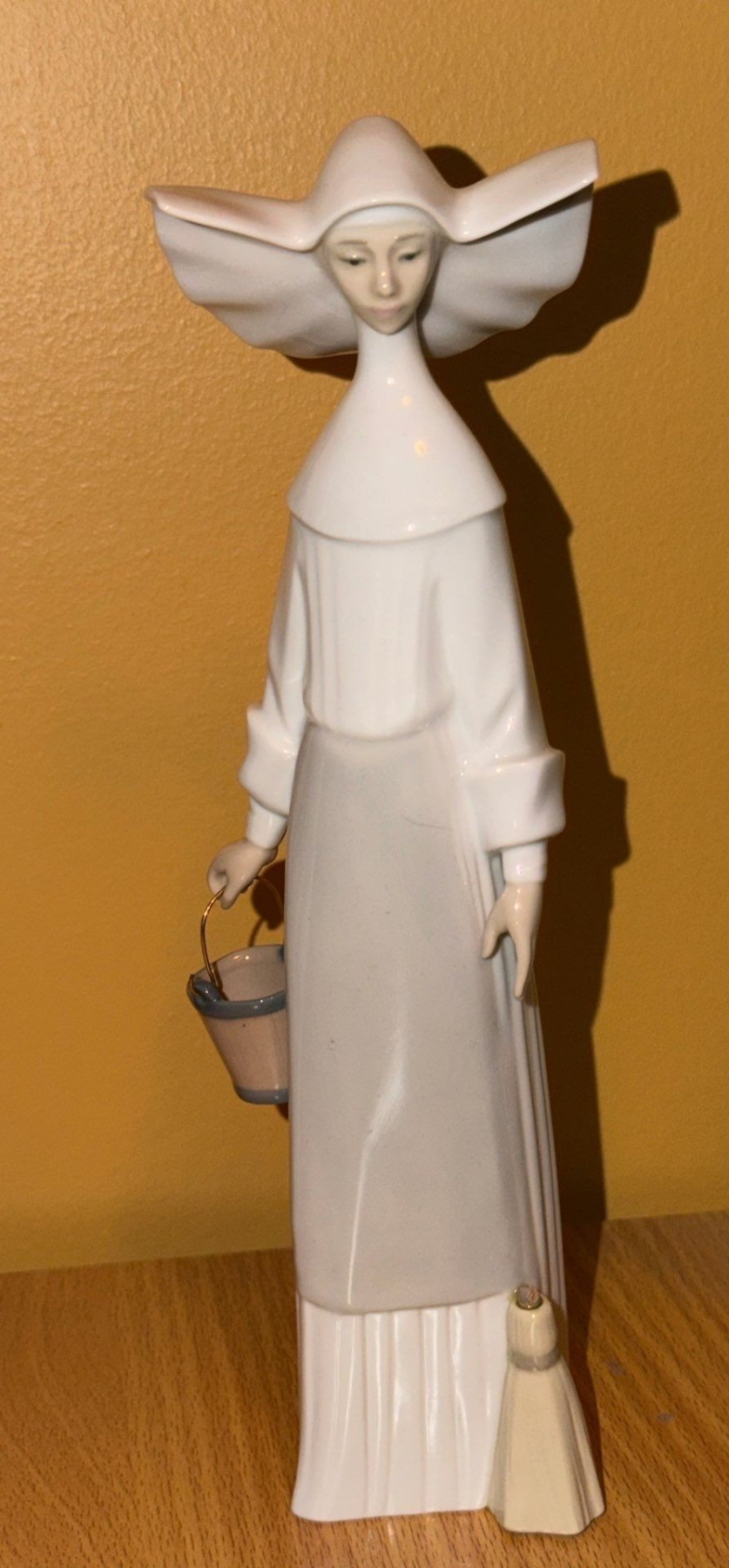 Lot 84 Lladro Figurines: Nun Holding Vase 10.5 T, Holding Mop and Bucket 10 T