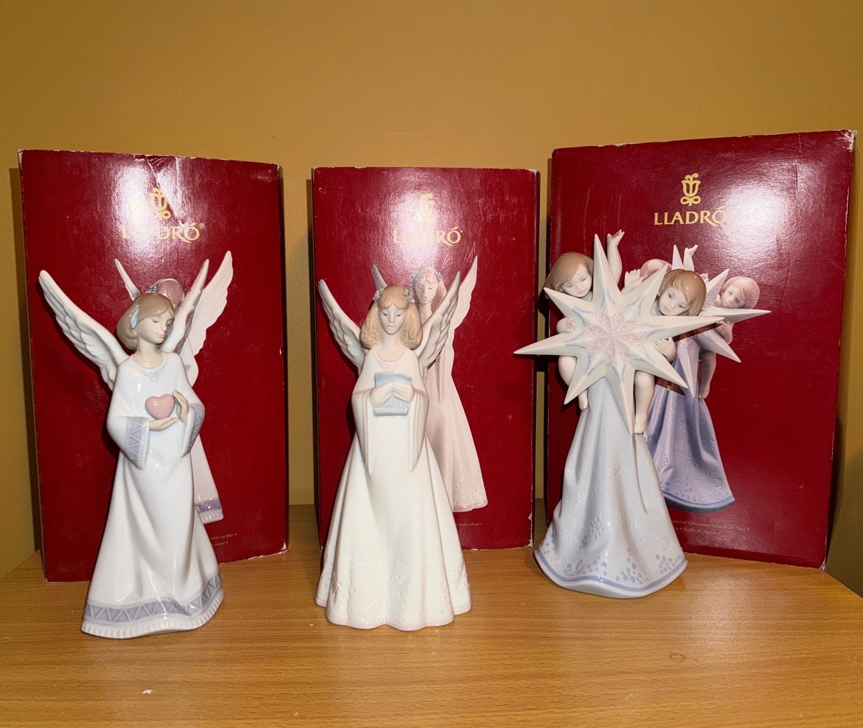 Lot 88 Lladro Angels: Holding Heart 8.5 T, Holding Book 9 T, Holding Star 10 T
