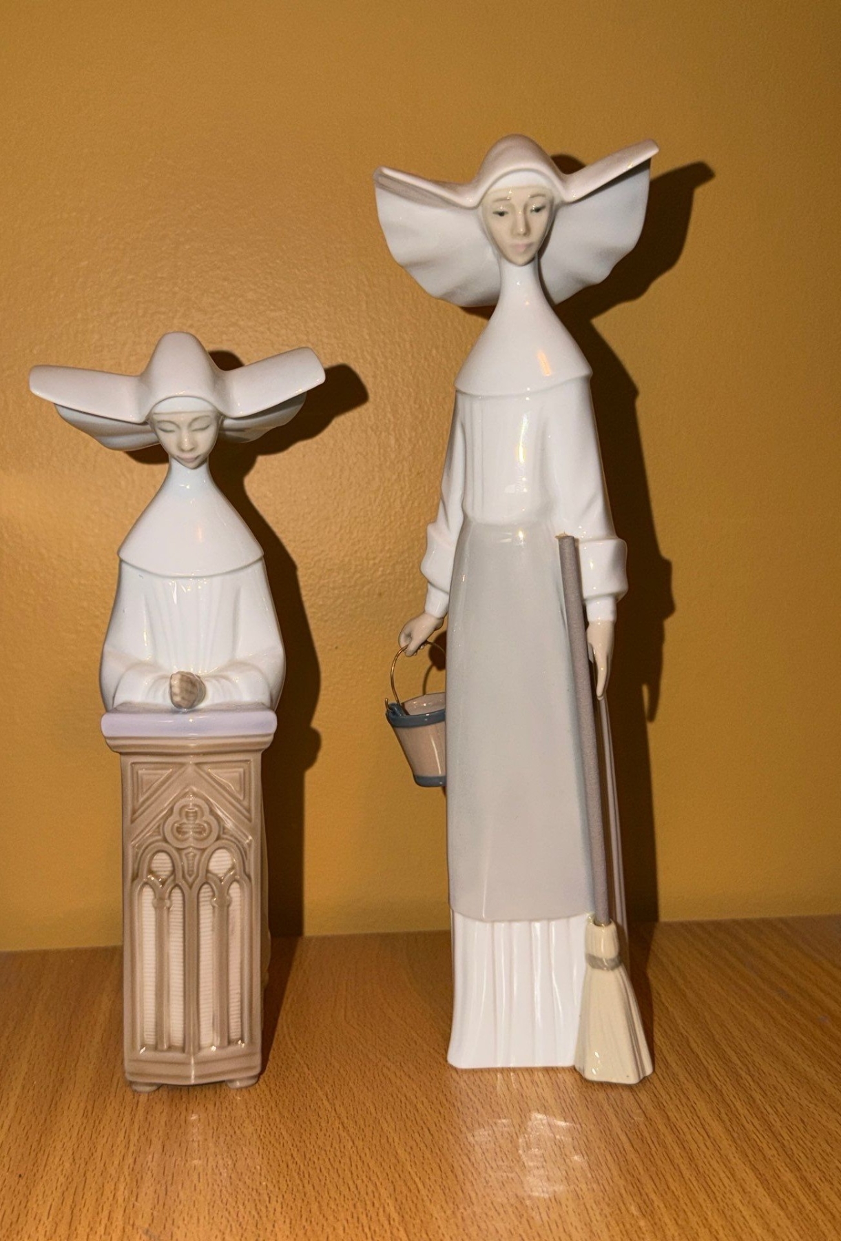 Lot 89 Lladro Nuns: At Podium 8.5 T and Holding Mop and Bucket 10.5 T