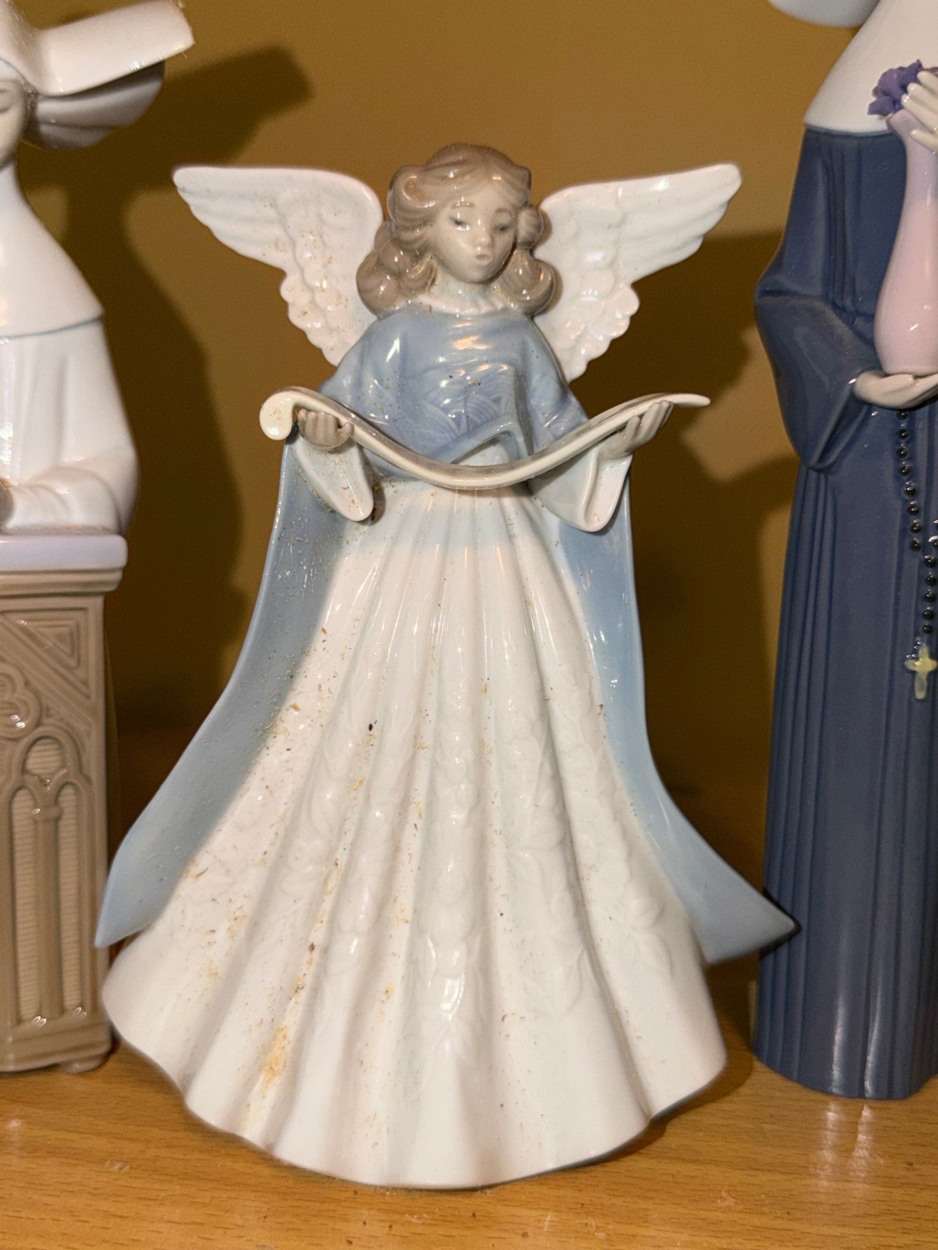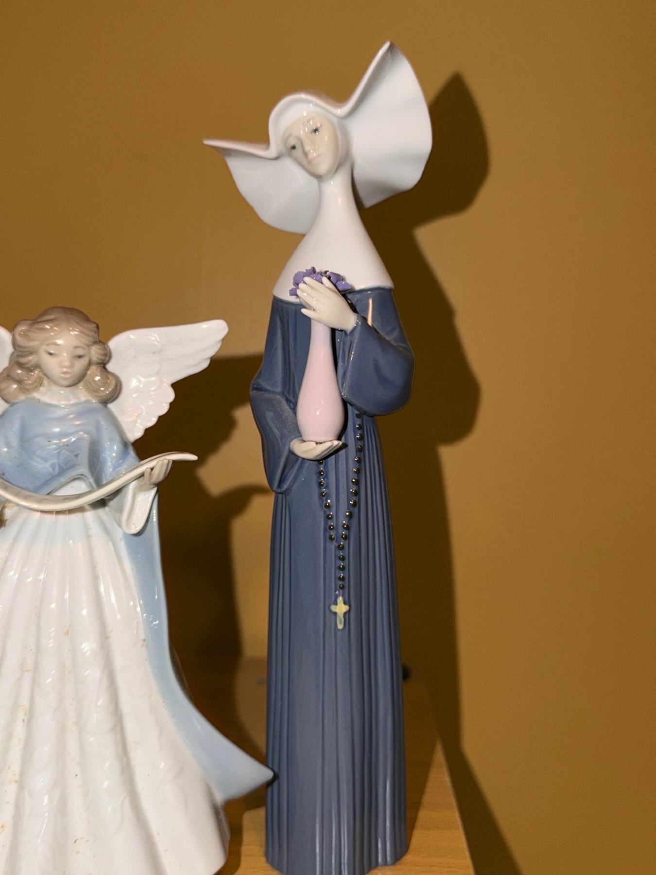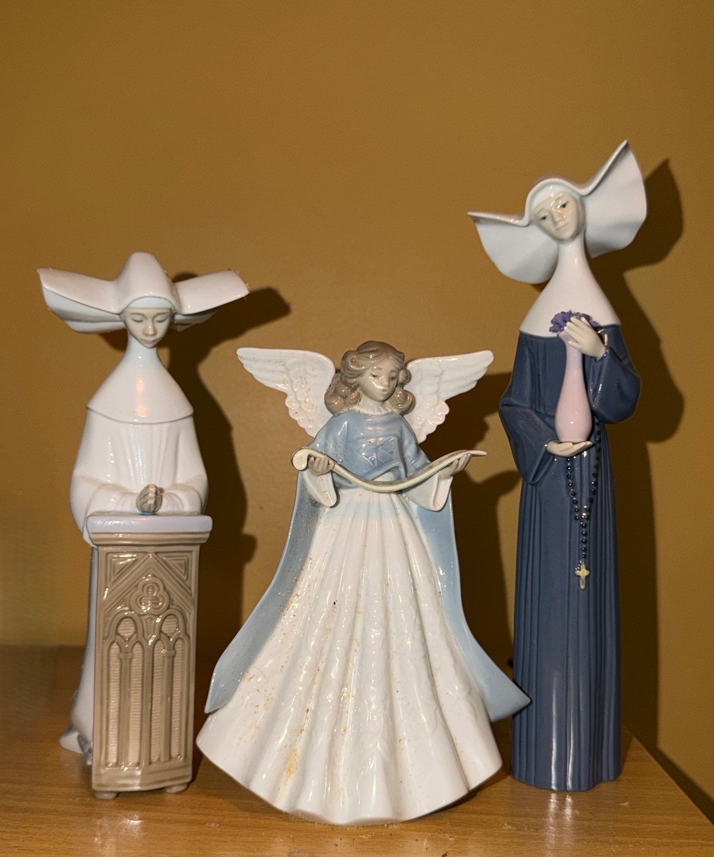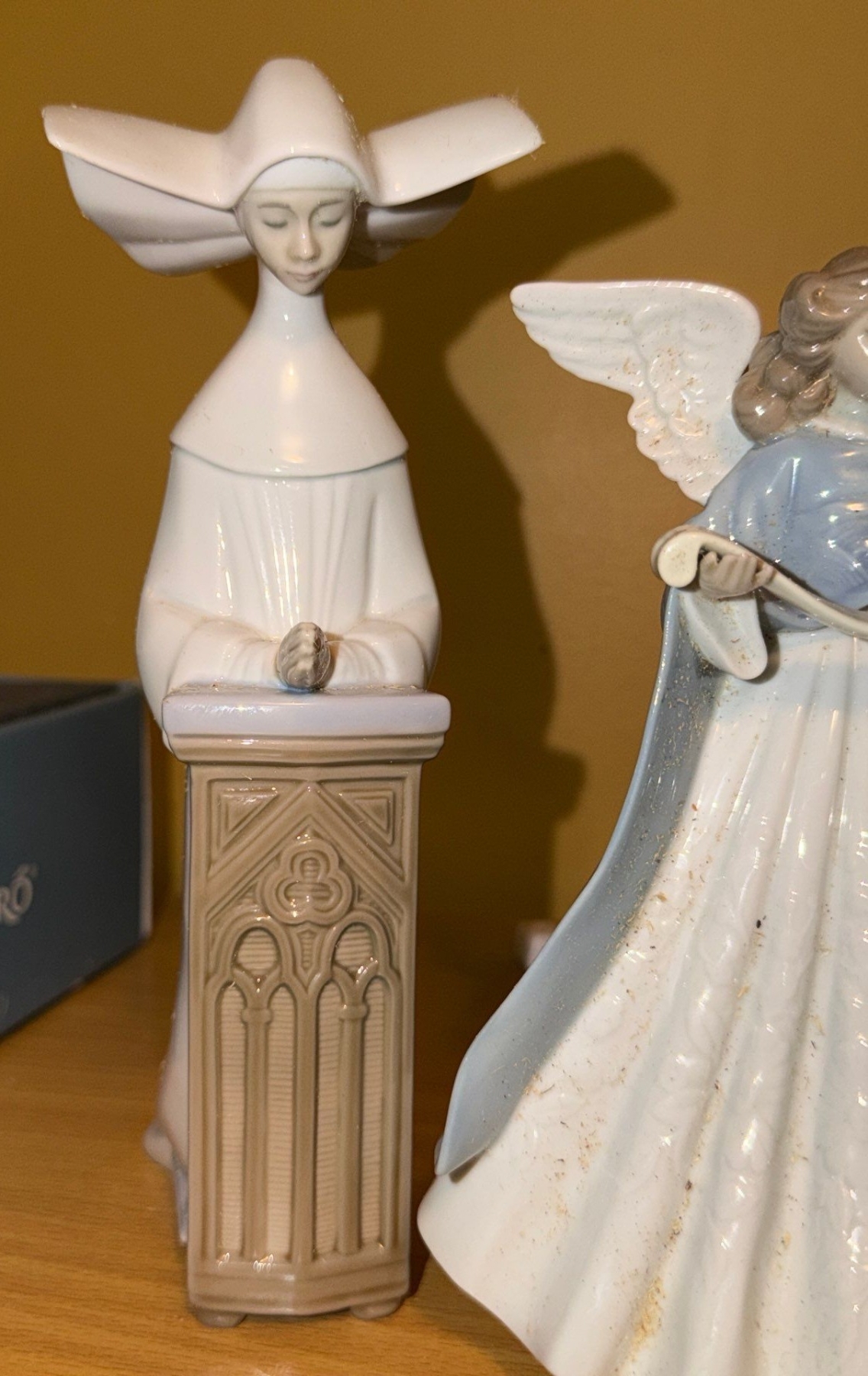 Lot 91 Lladro Figurines: Nun at Podium 10.5 T, Angel 5 W, 7.5 T, Praying Hands 8.5 T